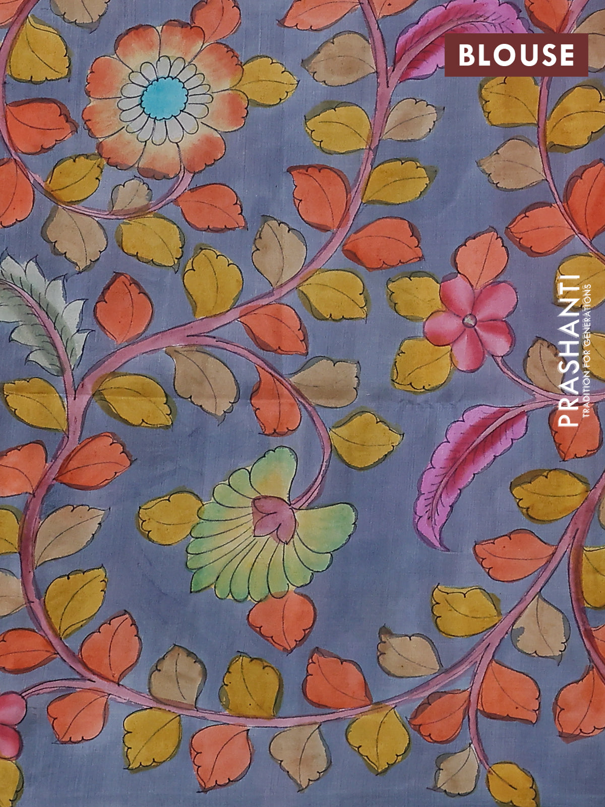 Pure soft silk saree dark peach and grey with plain body and kalamkari hand painted border & pallu