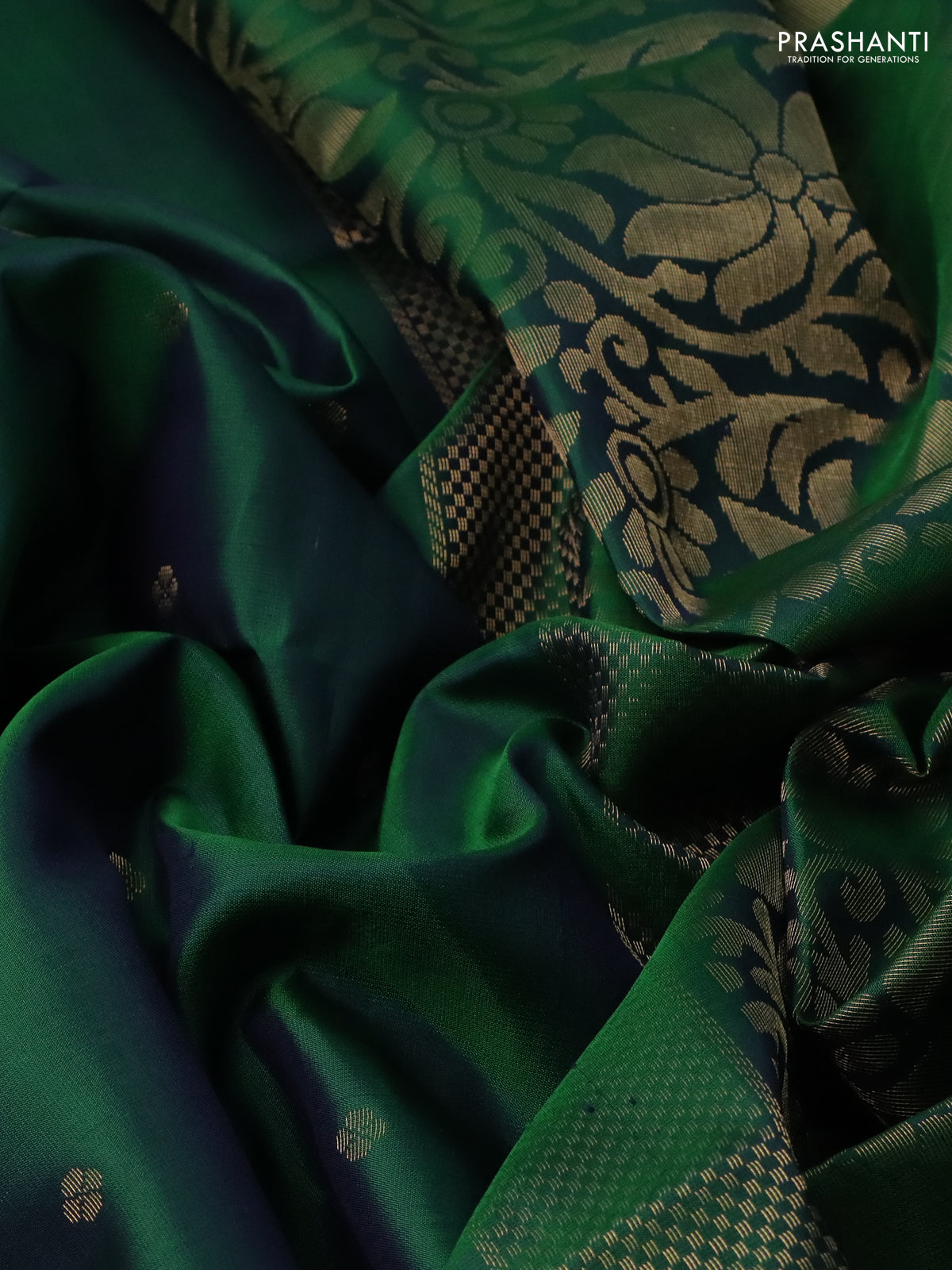 Pure soft silk saree dual shade of green with allover zari woven buttas in borderless style