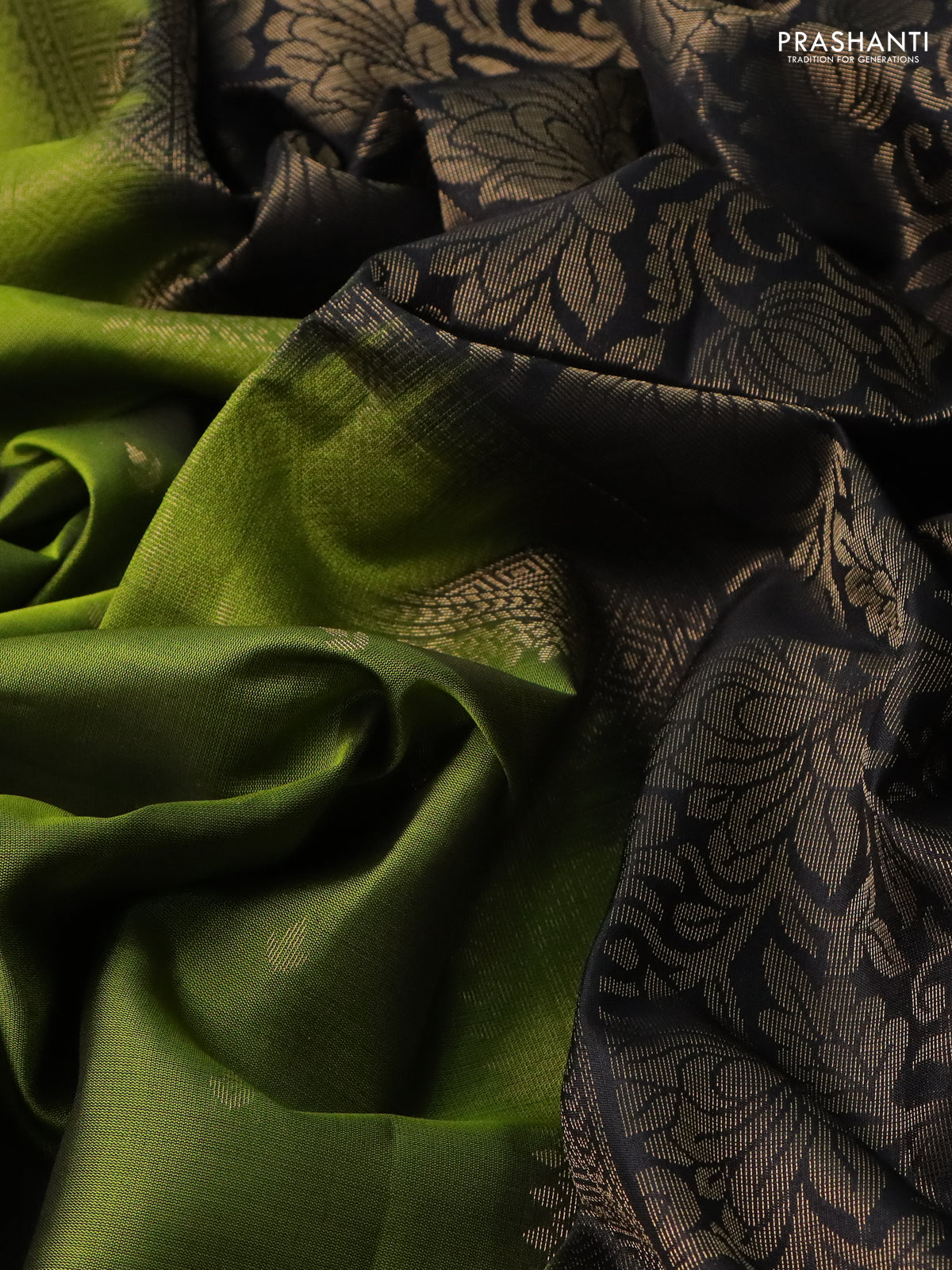 Pure soft silk saree light green and black with allover zari woven buttas and rettapet zari woven border