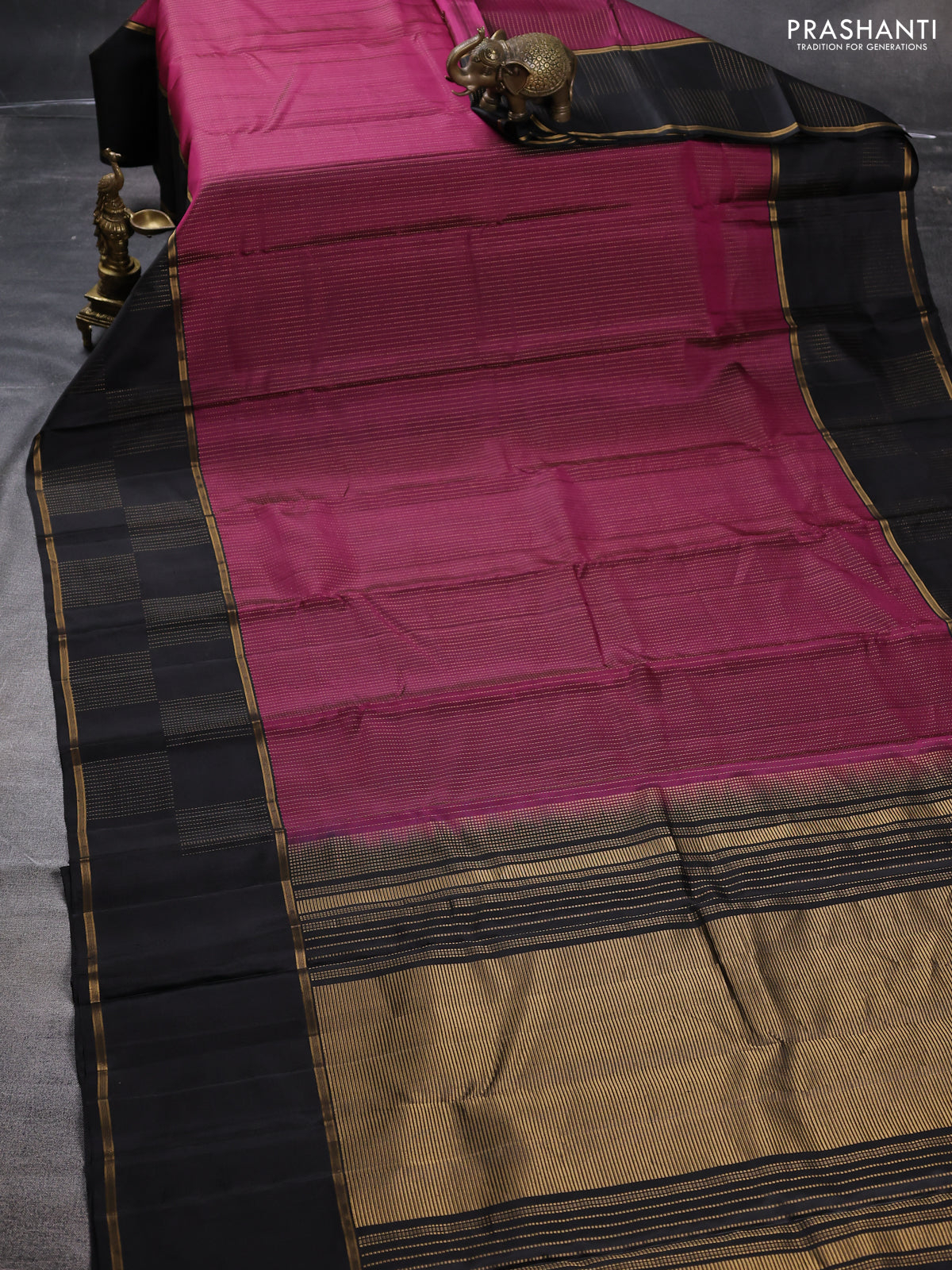 Pure soft silk saree magenta pink and black with allover zari woven strip pattern and long zari woven border