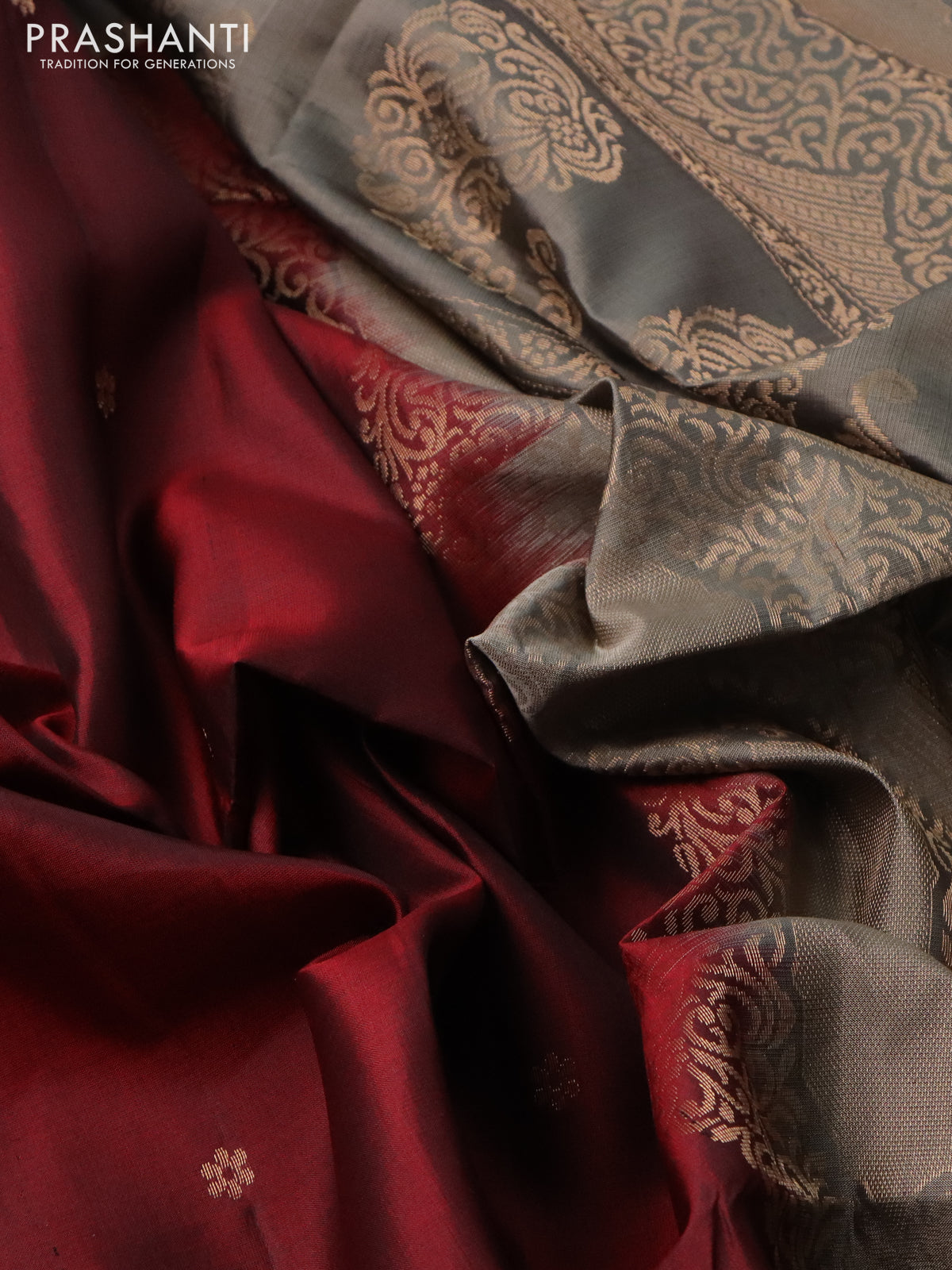 Pure soft silk saree maroon and grey shade with zari woven buttas and rettapet zari woven border