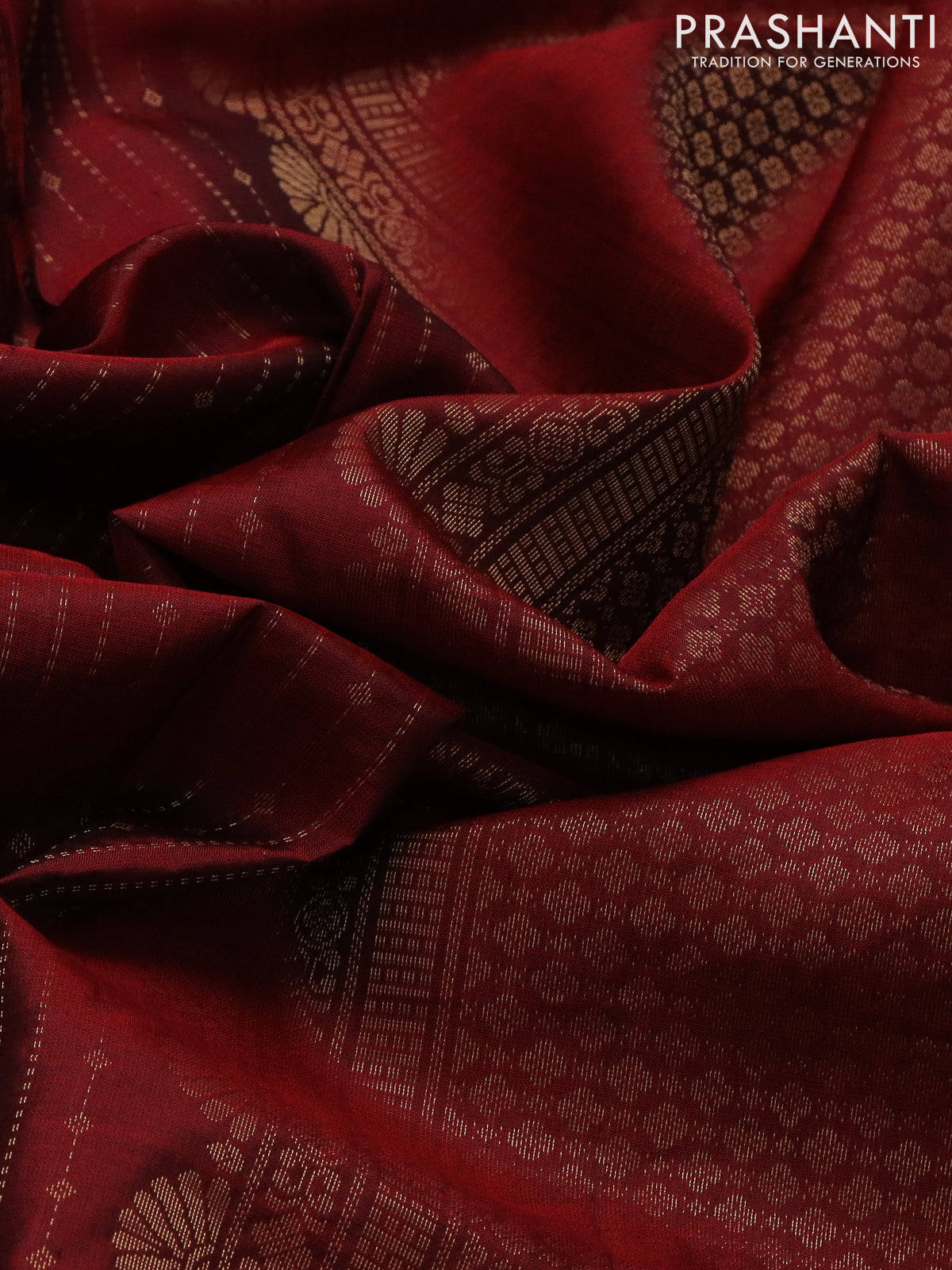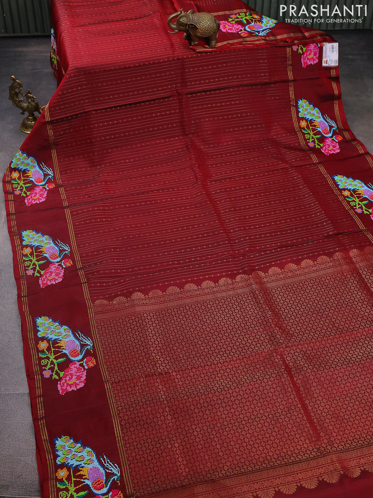 Pure soft silk saree maroon with allover zari weaves and zari woven parrot embroidery butta border