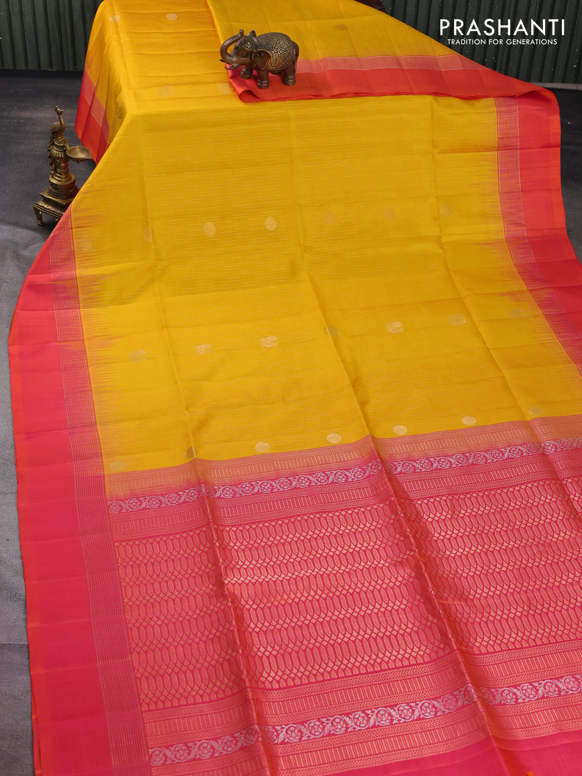 Pure soft silk saree mustard yellow and dual shade of pinkish orange with allover zari weaves and zari woven simple border