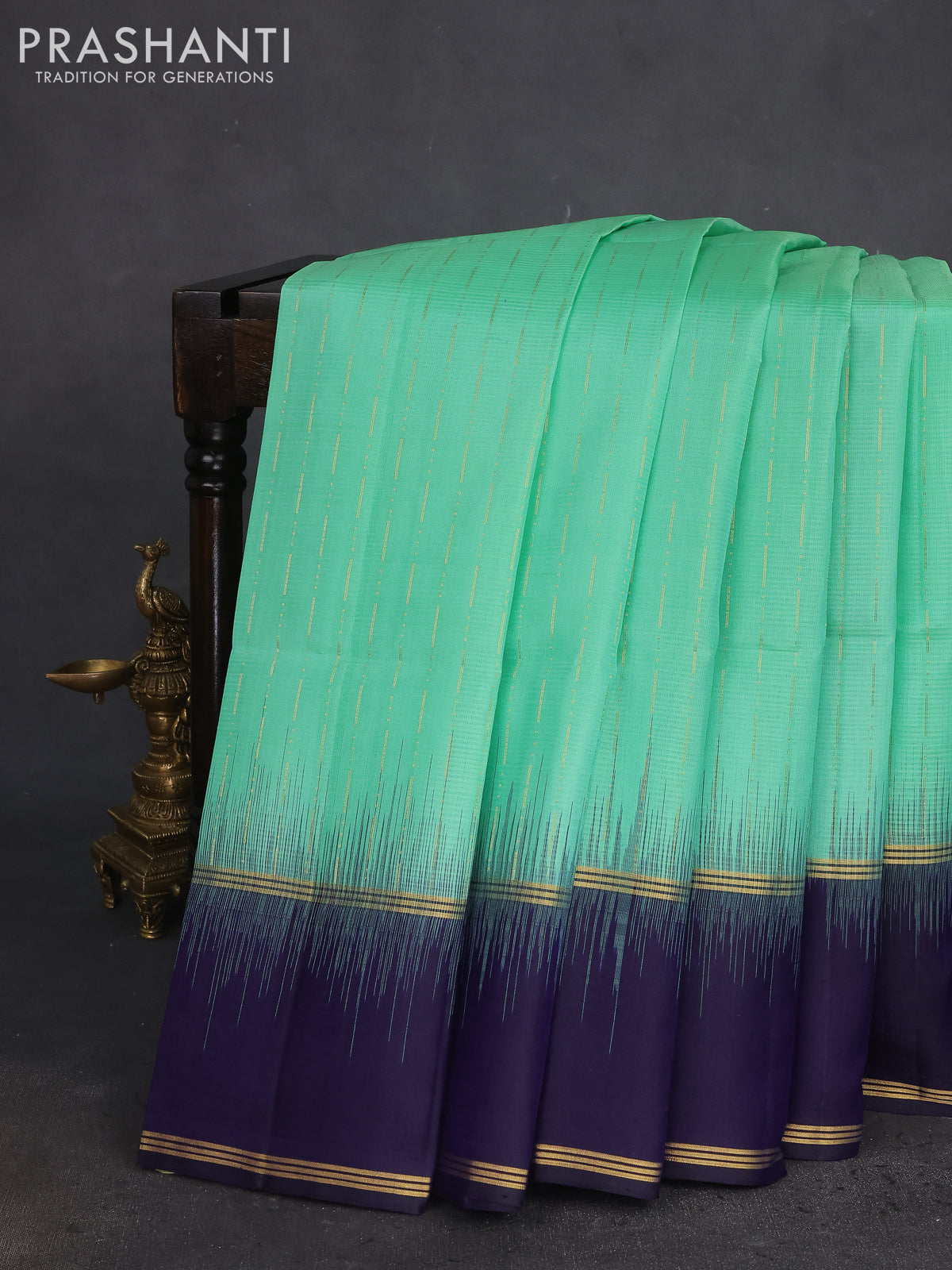 Pure soft silk saree pastel green and navy blue with zari woven buttas and zari woven border