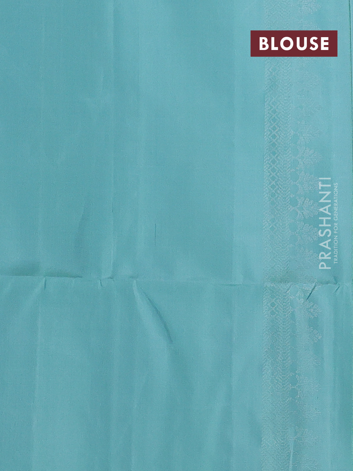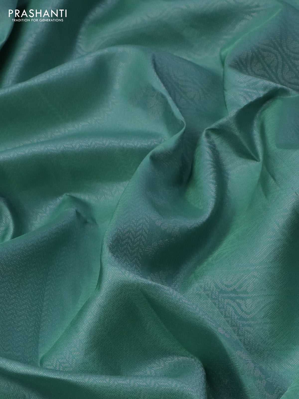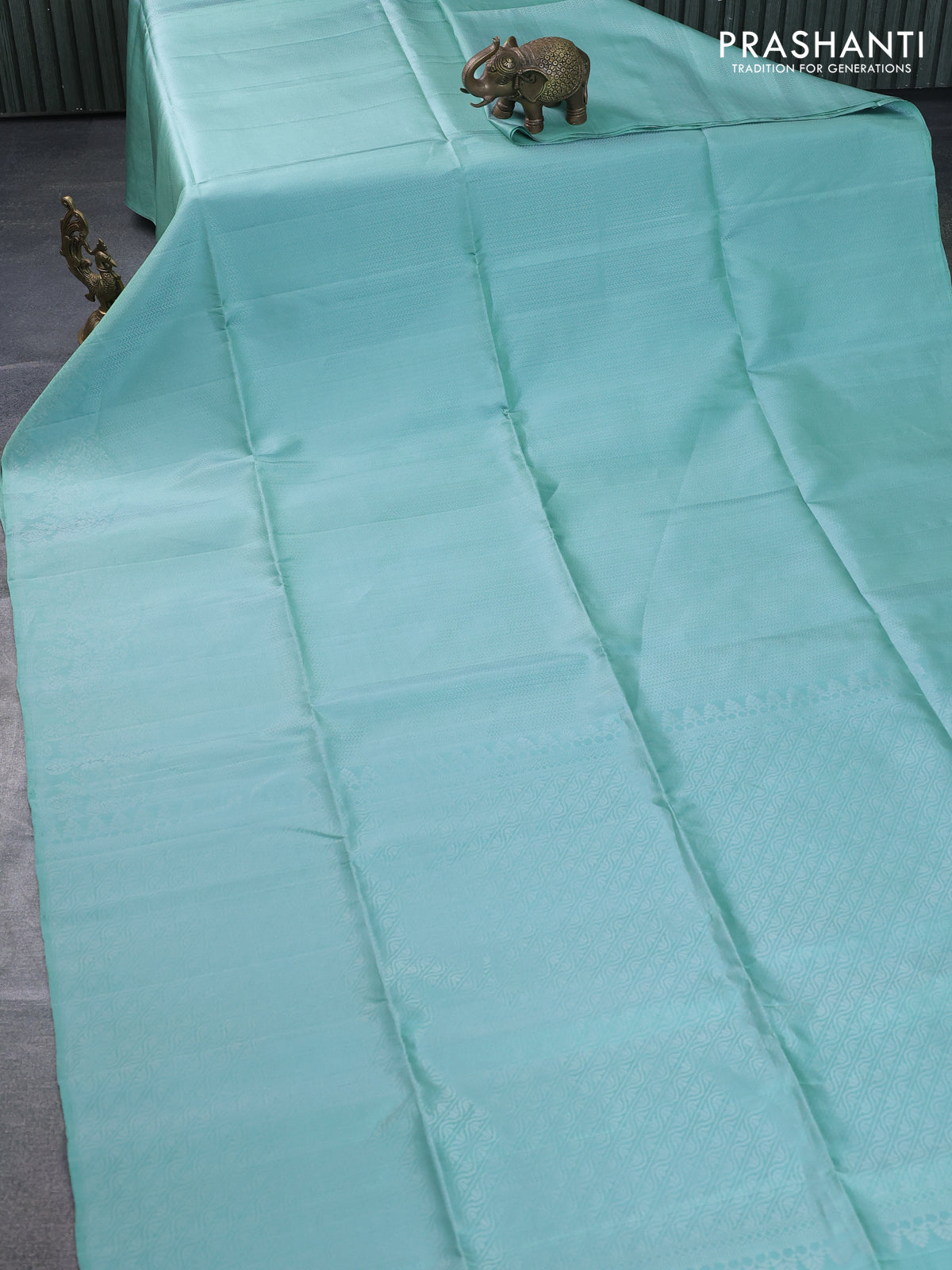 Pure soft silk saree pastel green with allover silver zari woven brocade weaves and rich silver zari border