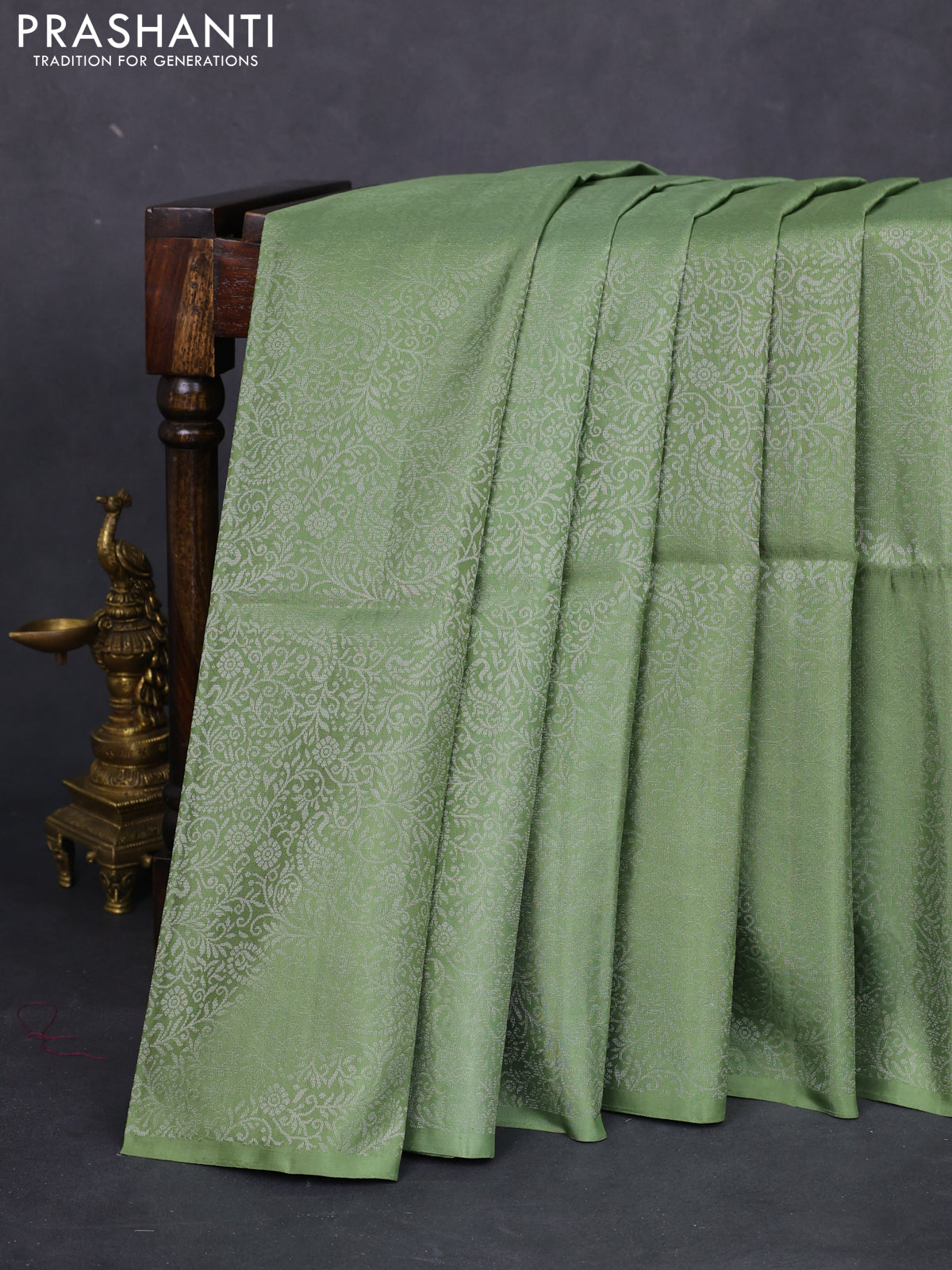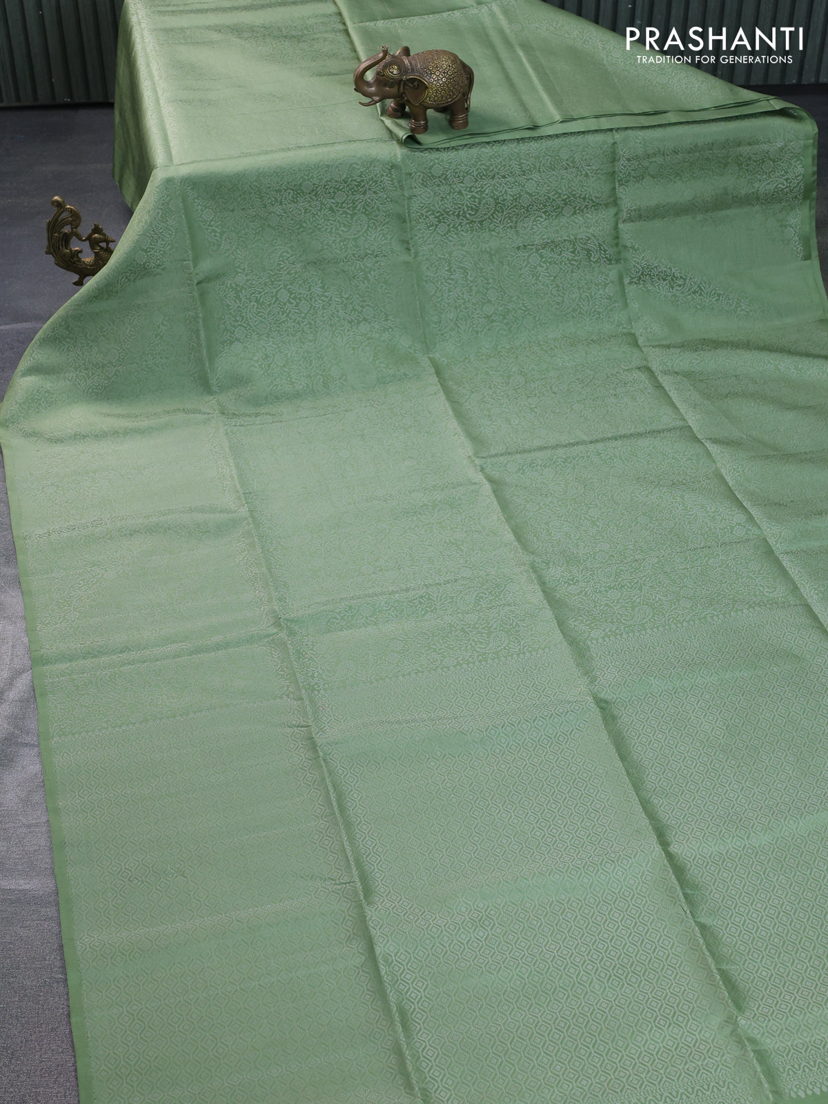 Pure soft silk saree pastel green with allover silver zari woven brocade weaves in borderless style