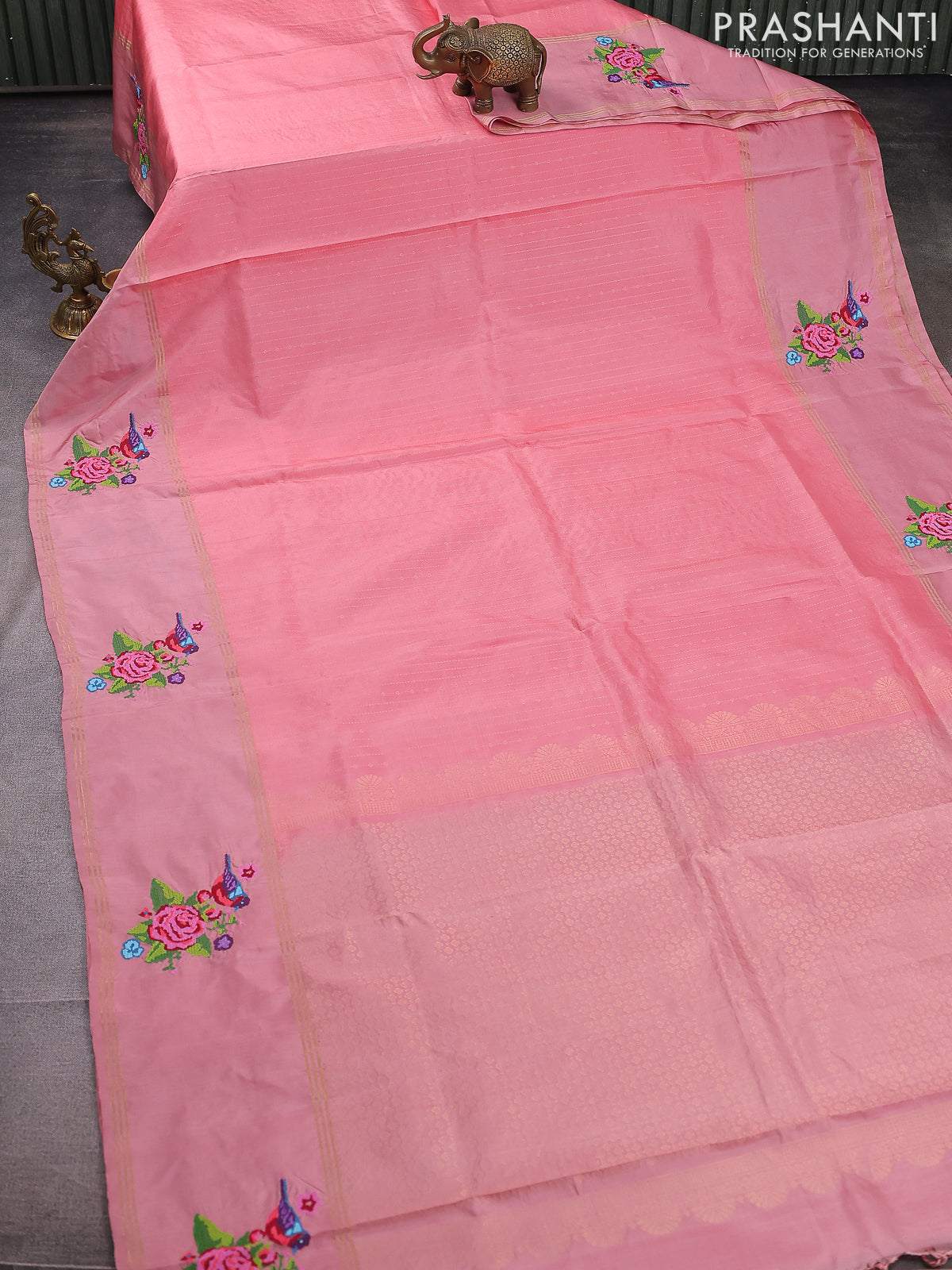 Pure soft silk saree peach pink and peastel peach pink with allover zari weaves and zari woven embroidery butta border