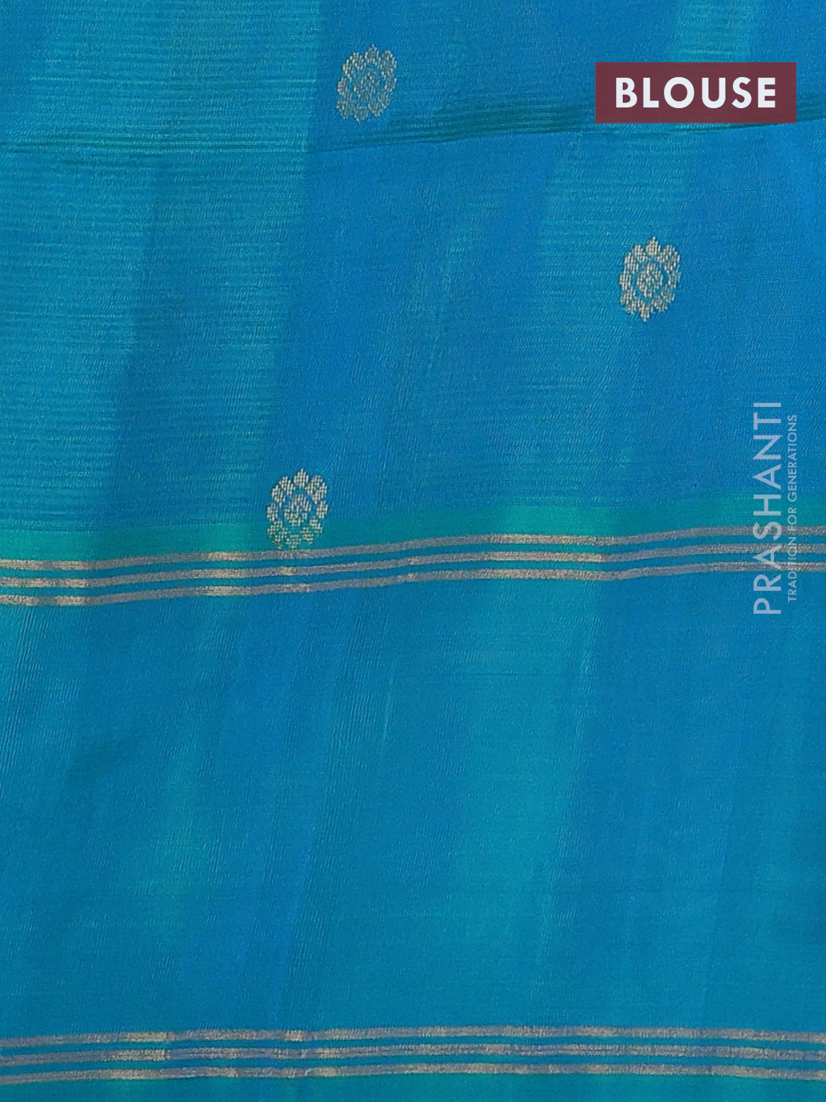 Pure soft silk saree pink and dual shade of teal blue with zari woven buttas and rettapet zari woven border