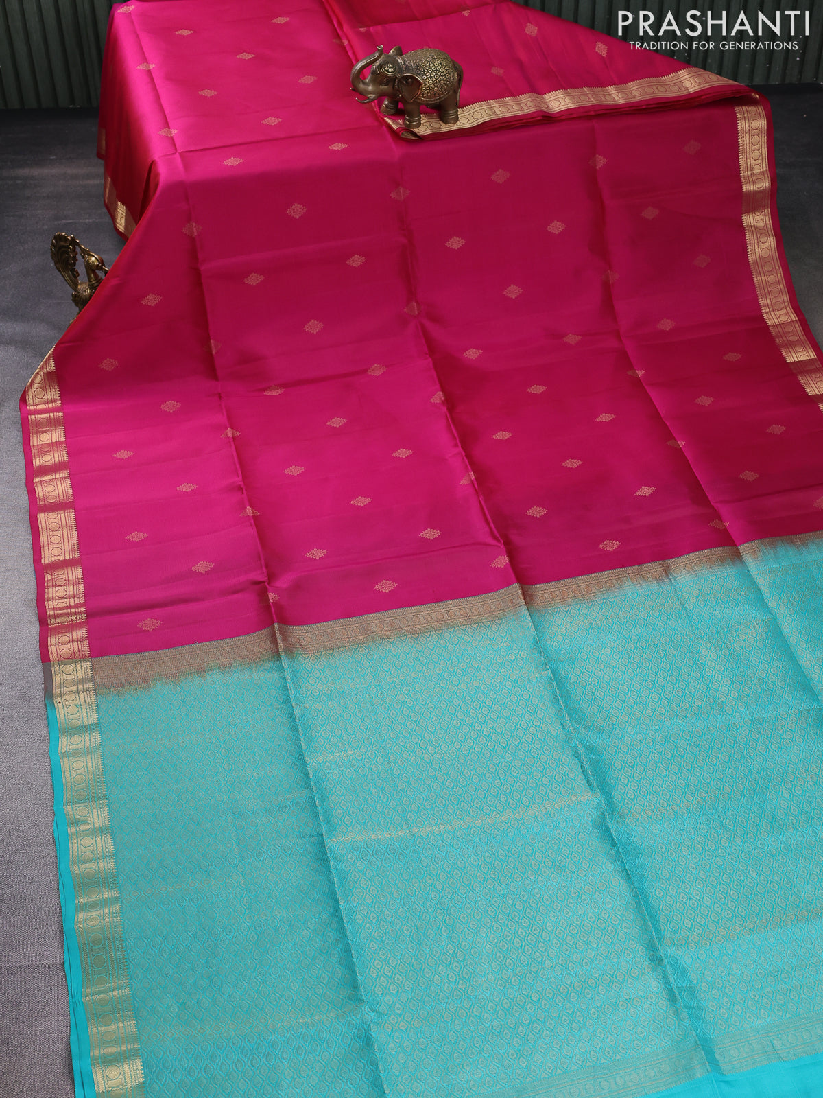 Pure soft silk saree pink and teal blue with zari woven buttas and zari woven border