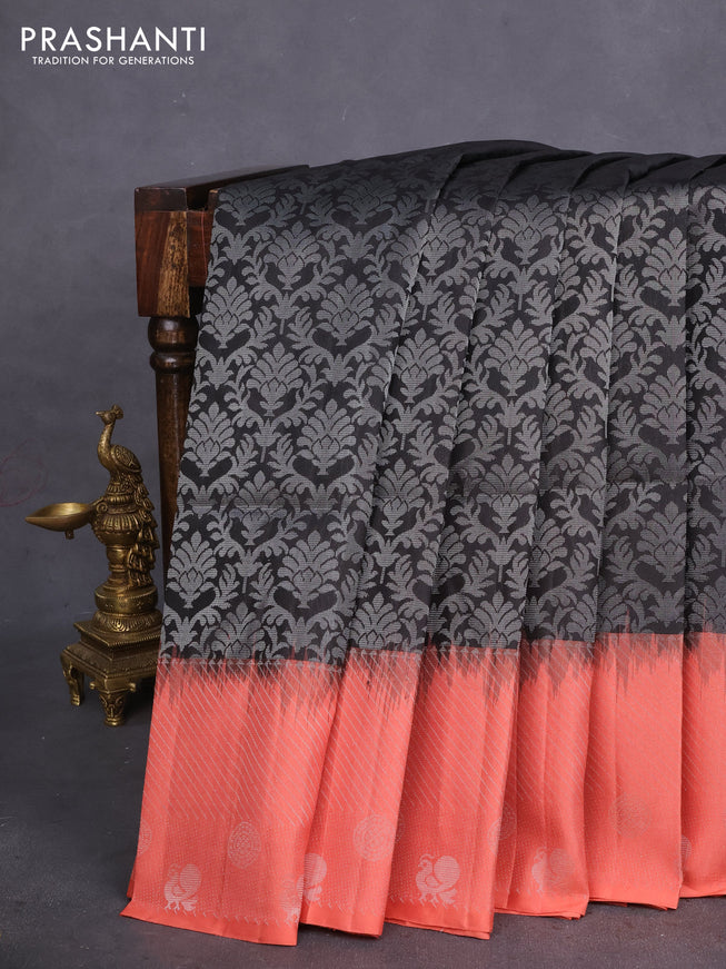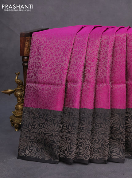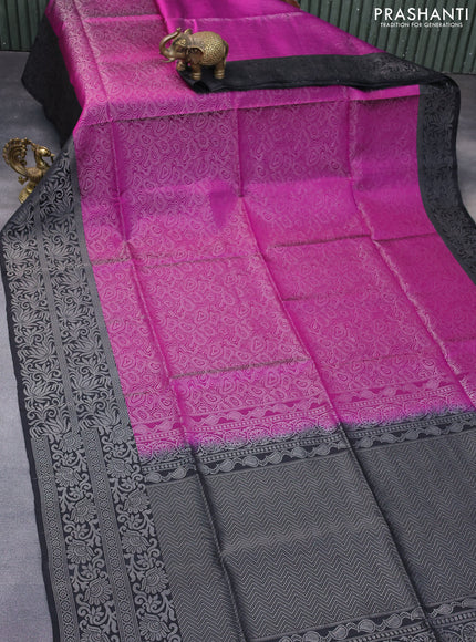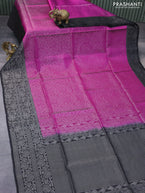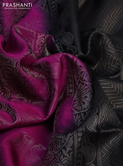 Pure soft silk saree purple and black with allover silver zari woven brocade weaves and silver zari woven border