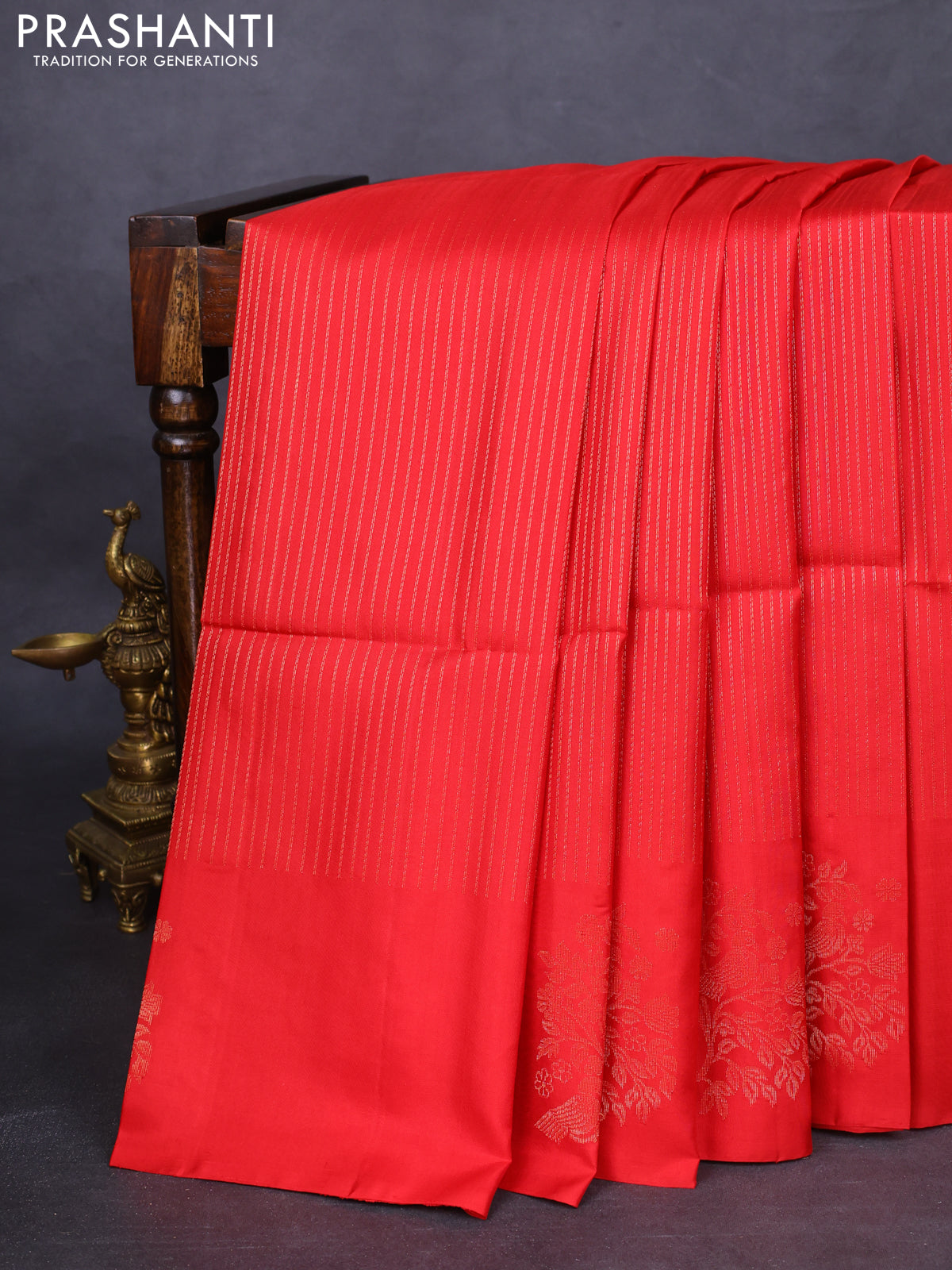 Pure soft silk saree red with allover zari weaves and zari woven butta border