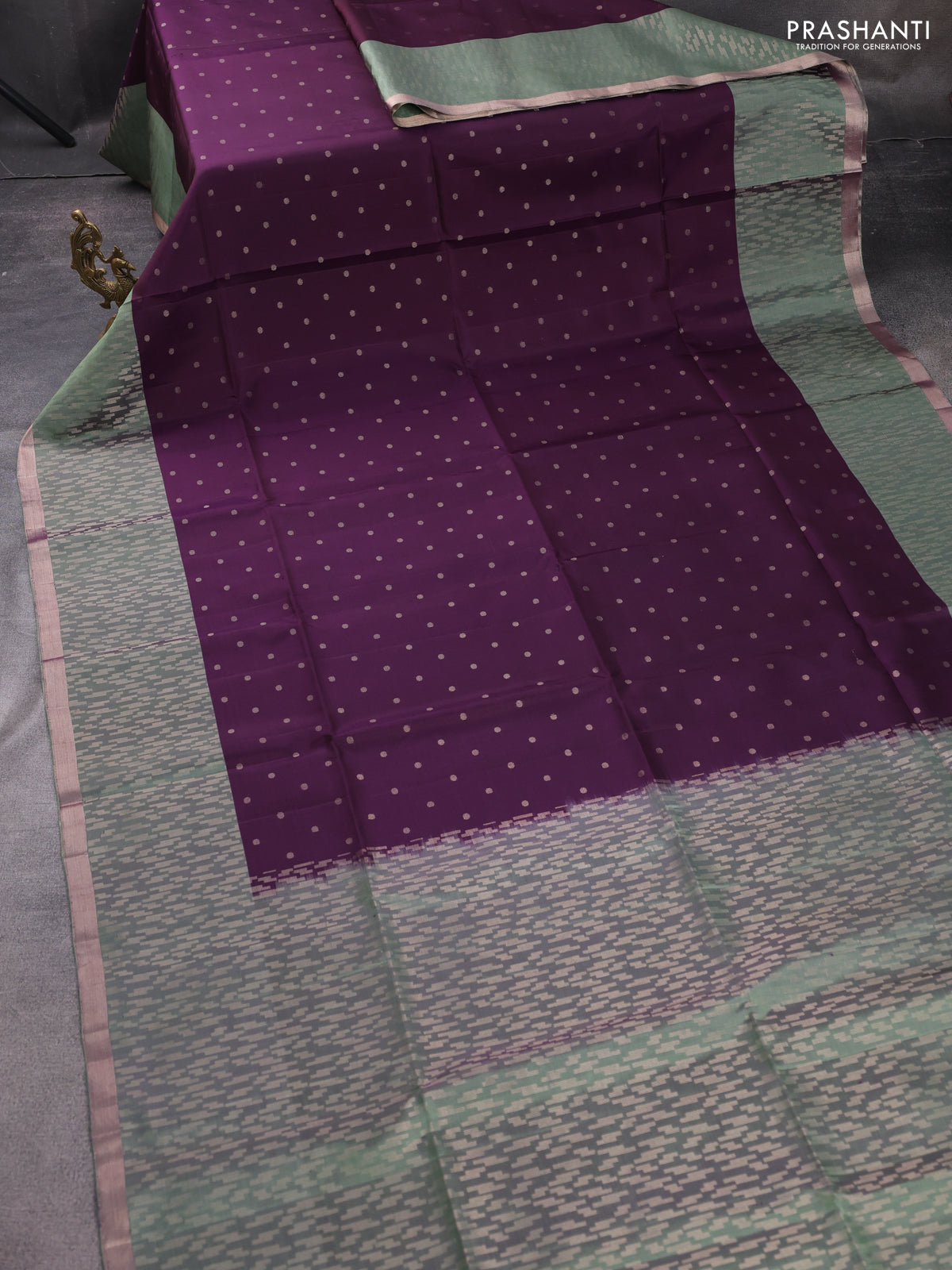 Pure soft silk saree wine shade and pastel green with zari woven buttas and zari woven border