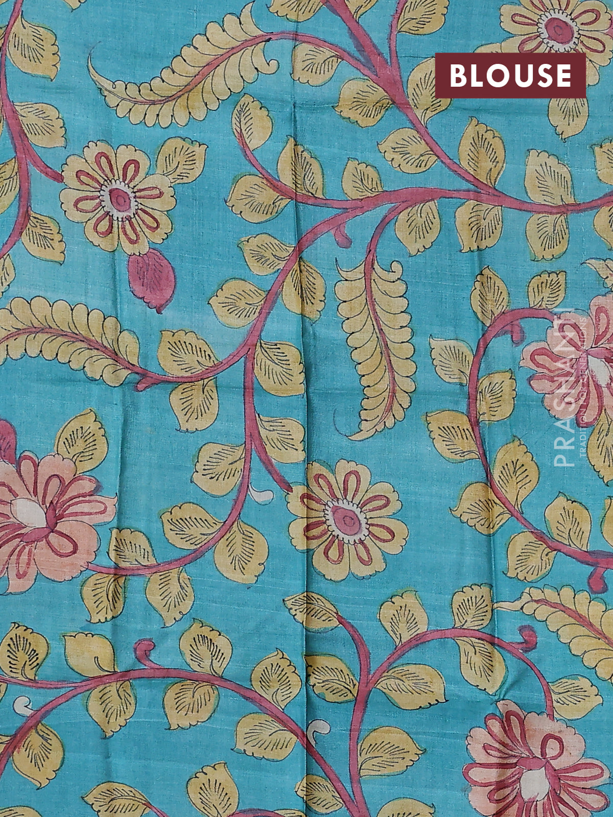 Pure tussar silk saree beige and teal blue with allover zari checked pattern and zari woven border