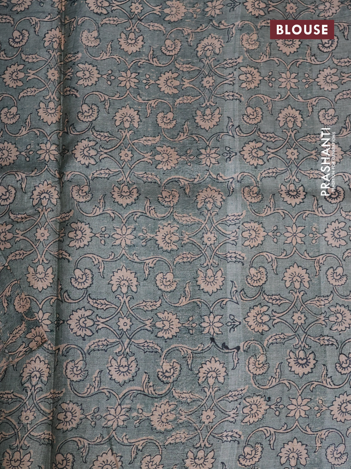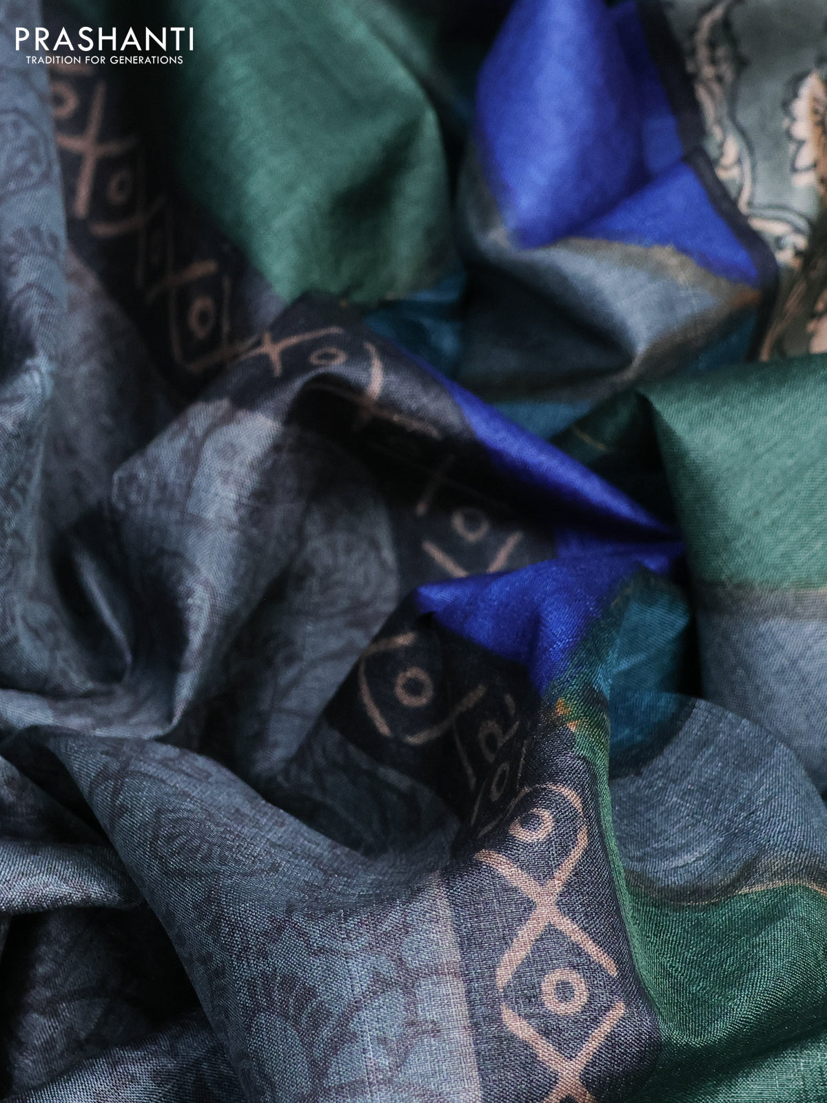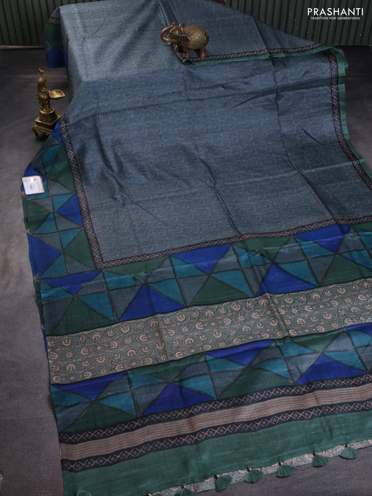 Pure tussar silk saree grey and multi colour with allover prints and printed border