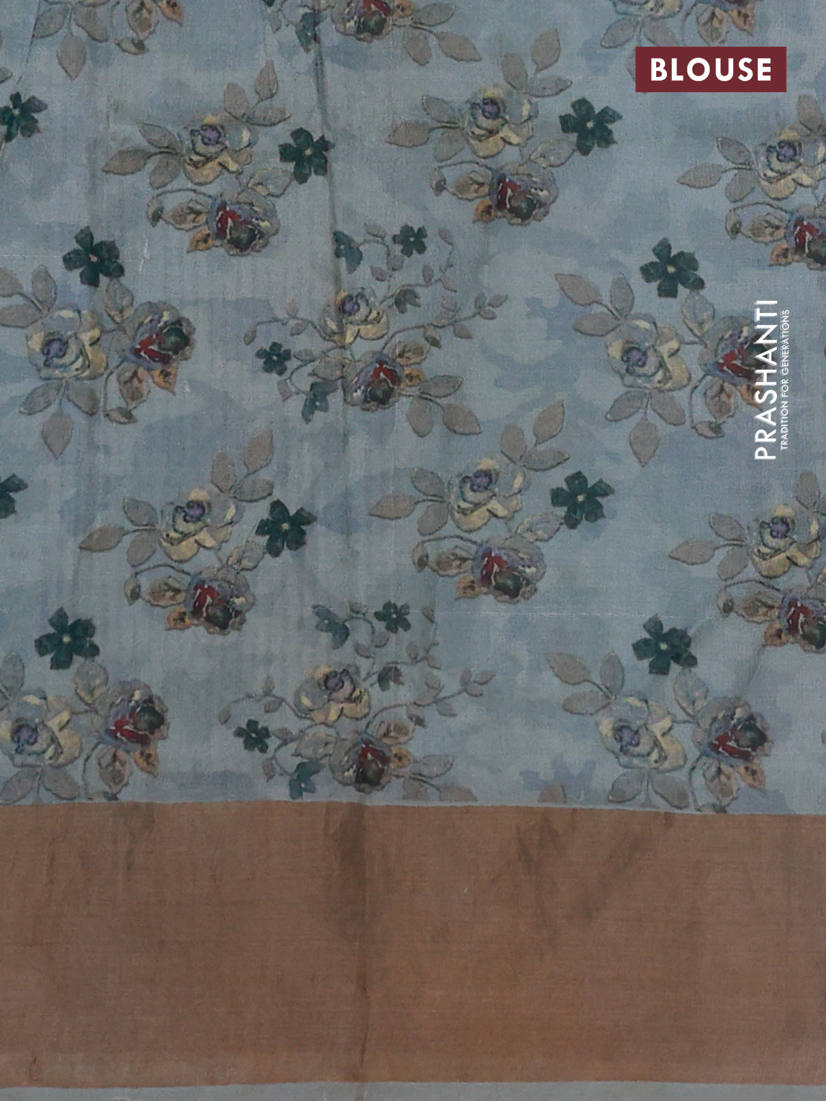 Pure tussar silk saree grey with floral digital prints and zari woven border