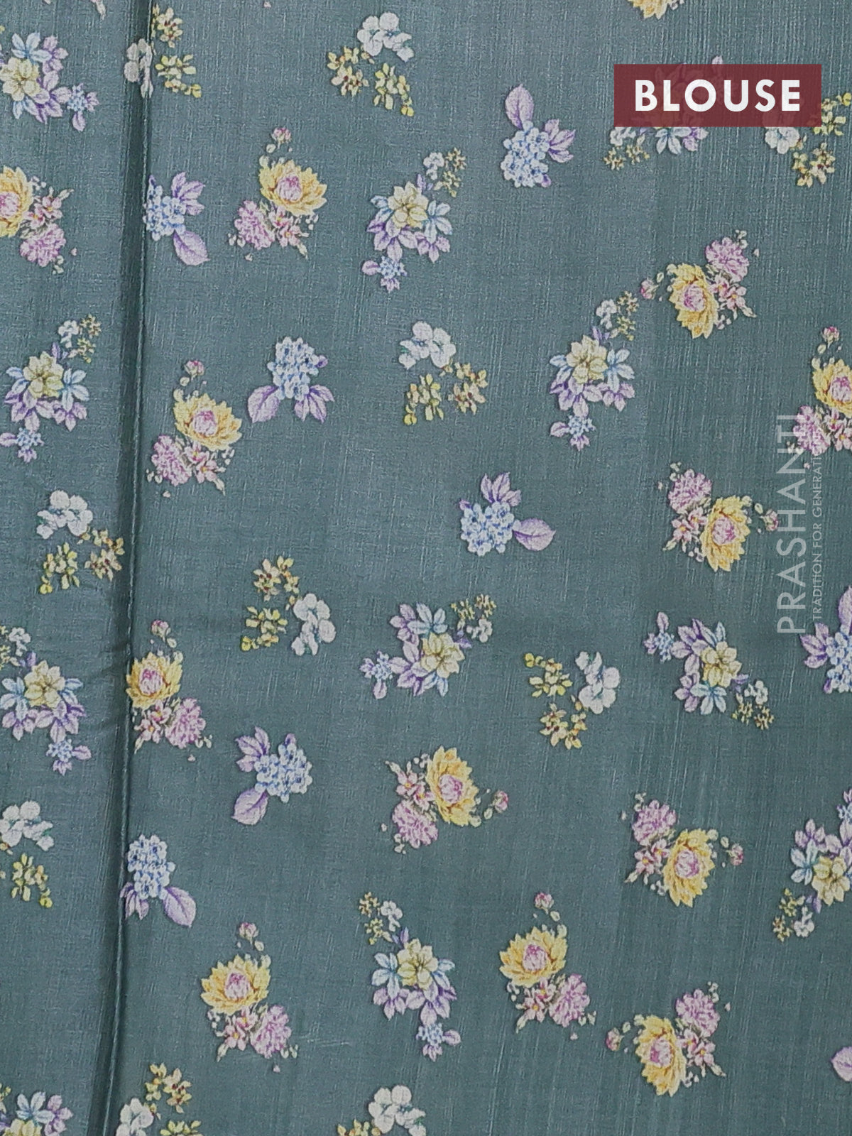 Pure tussar silk saree pastel green with allover floral digital prints in borderless style