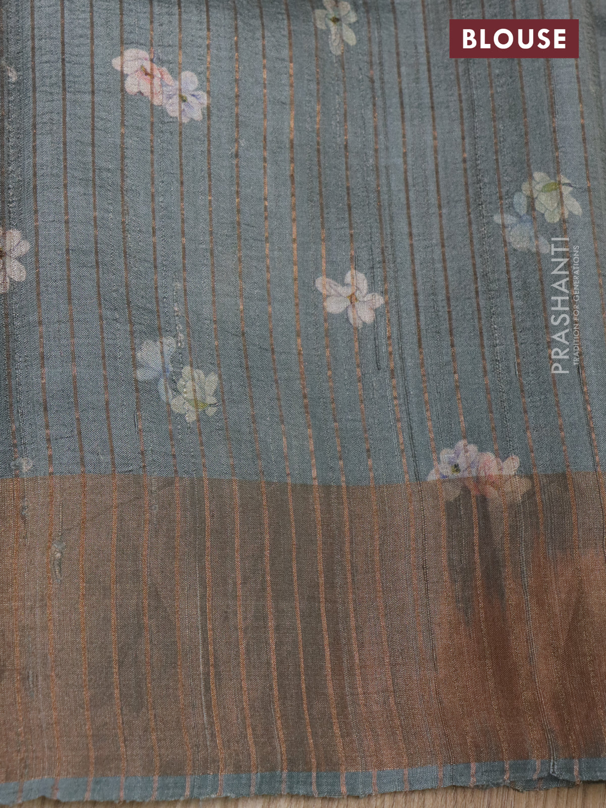 Pure tussar silk saree pastel green with floral digital prints and zari woven border