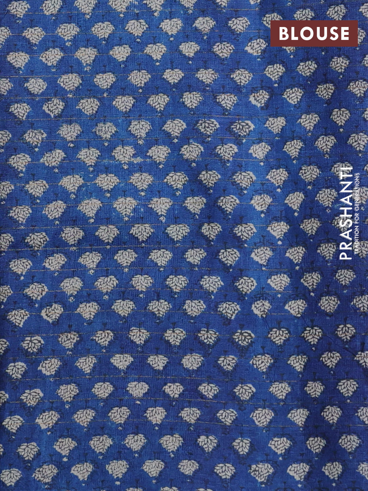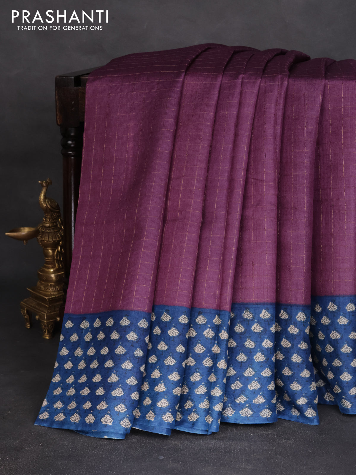 Pure tussar silk saree purple and blue with allover zari checked pattern and printed border