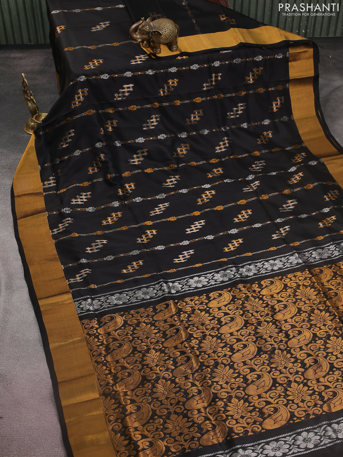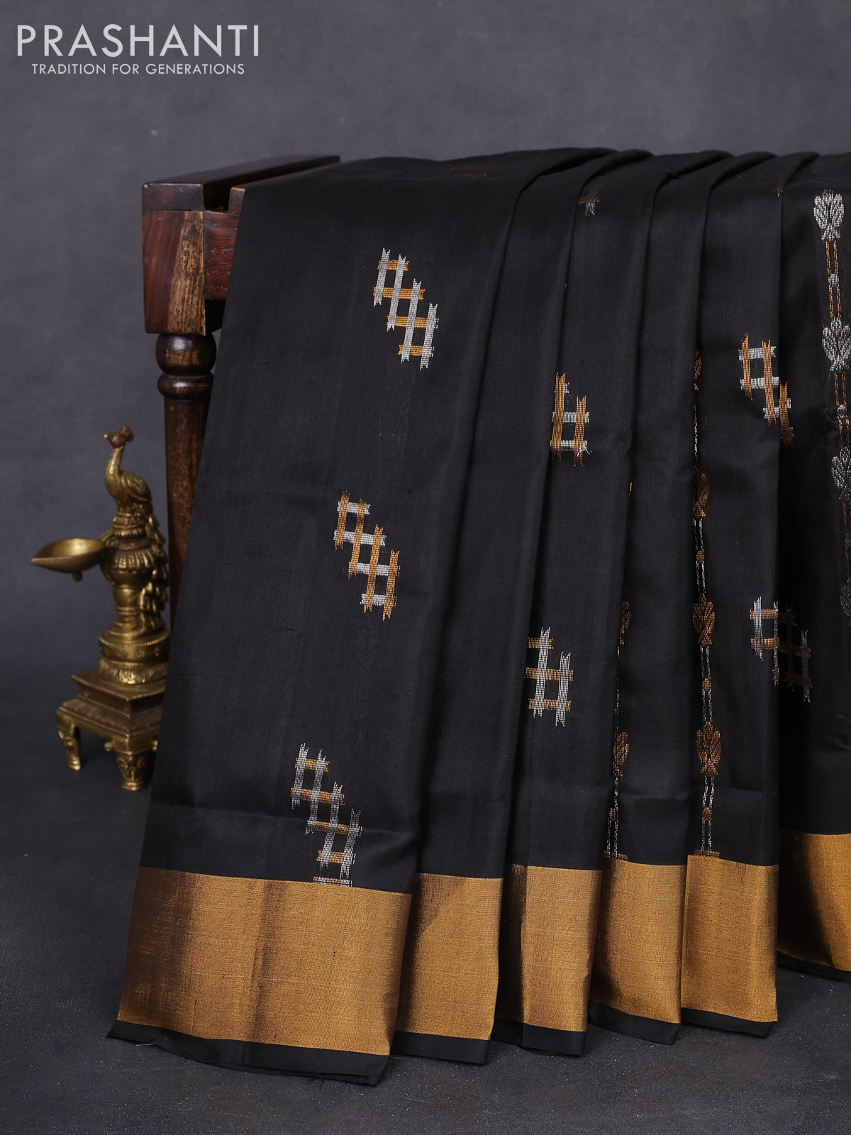 Pure uppada silk saree black with allover silver & gold zari weaves and zari woven border