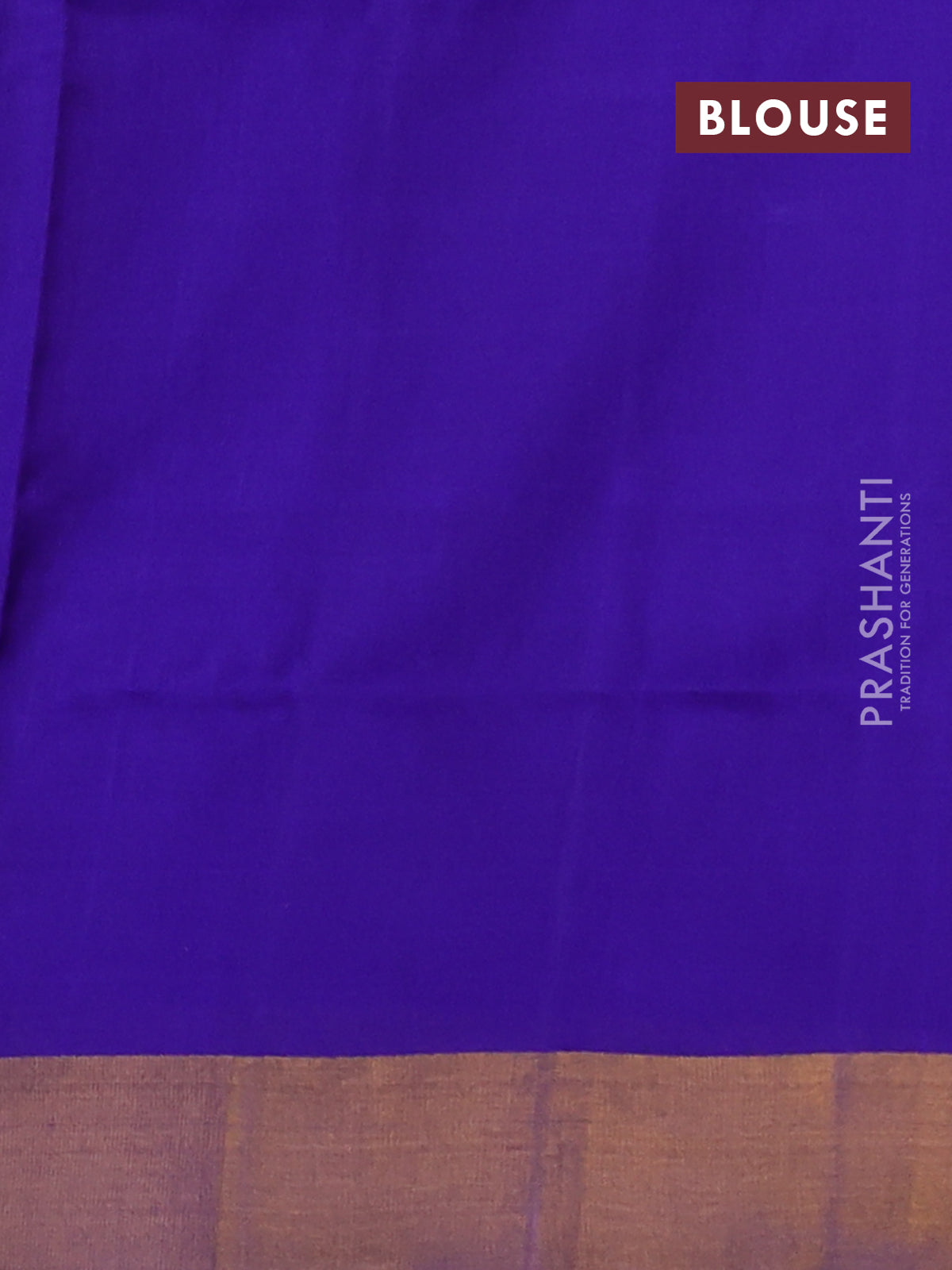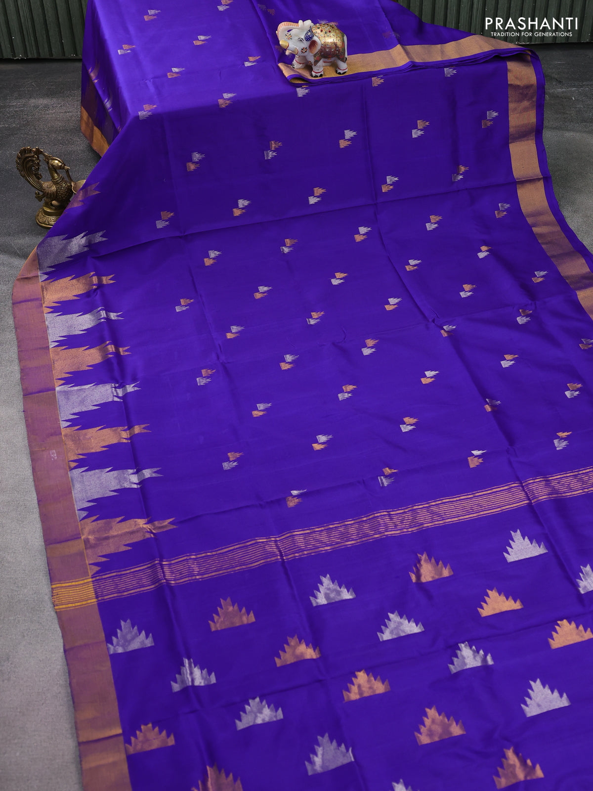 Pure uppada silk saree blue with silver & gold temple zari buttas and temple design zari woven border