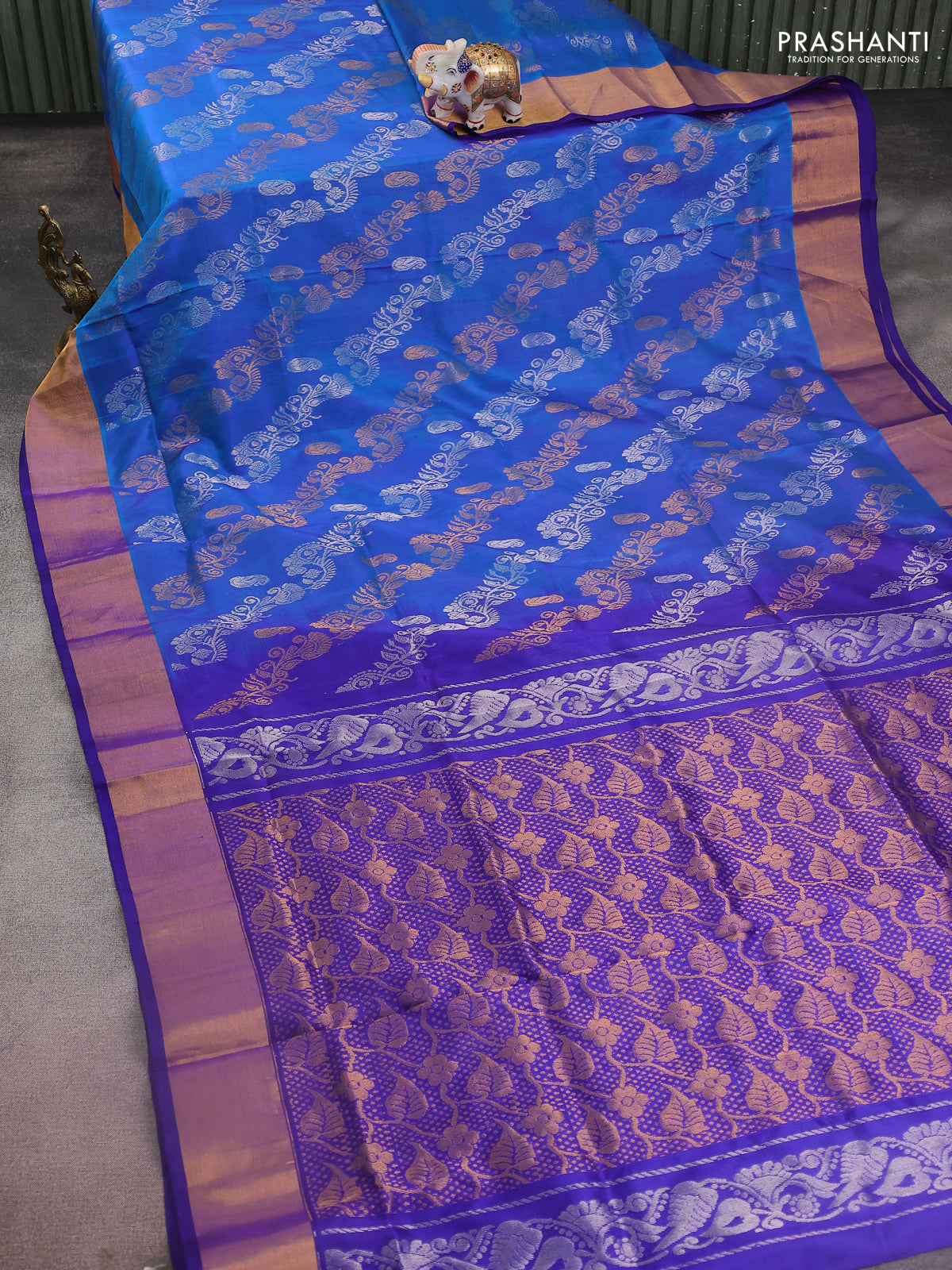Pure uppada silk saree cs blue and blue with allover silver & gold zari weavess and zari woven border
