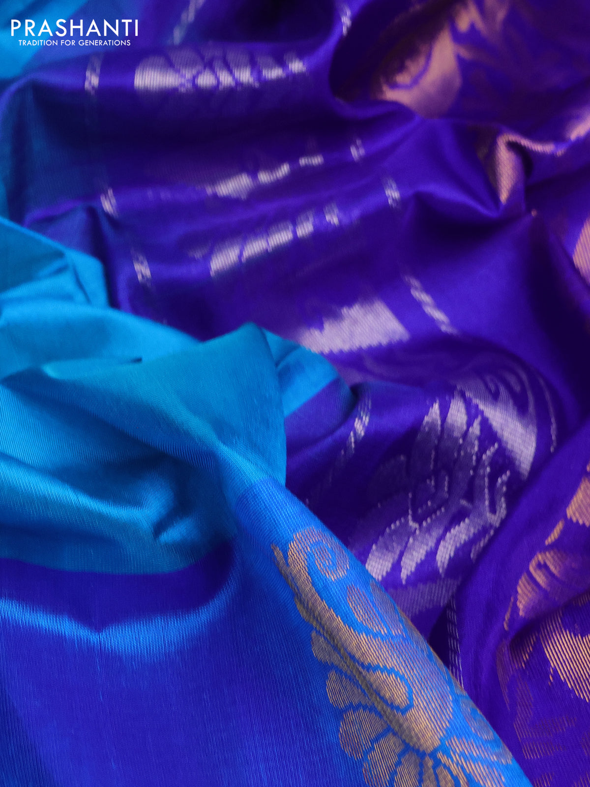 Pure uppada silk saree cs blue and blue with zari woven buttas and zari woven border