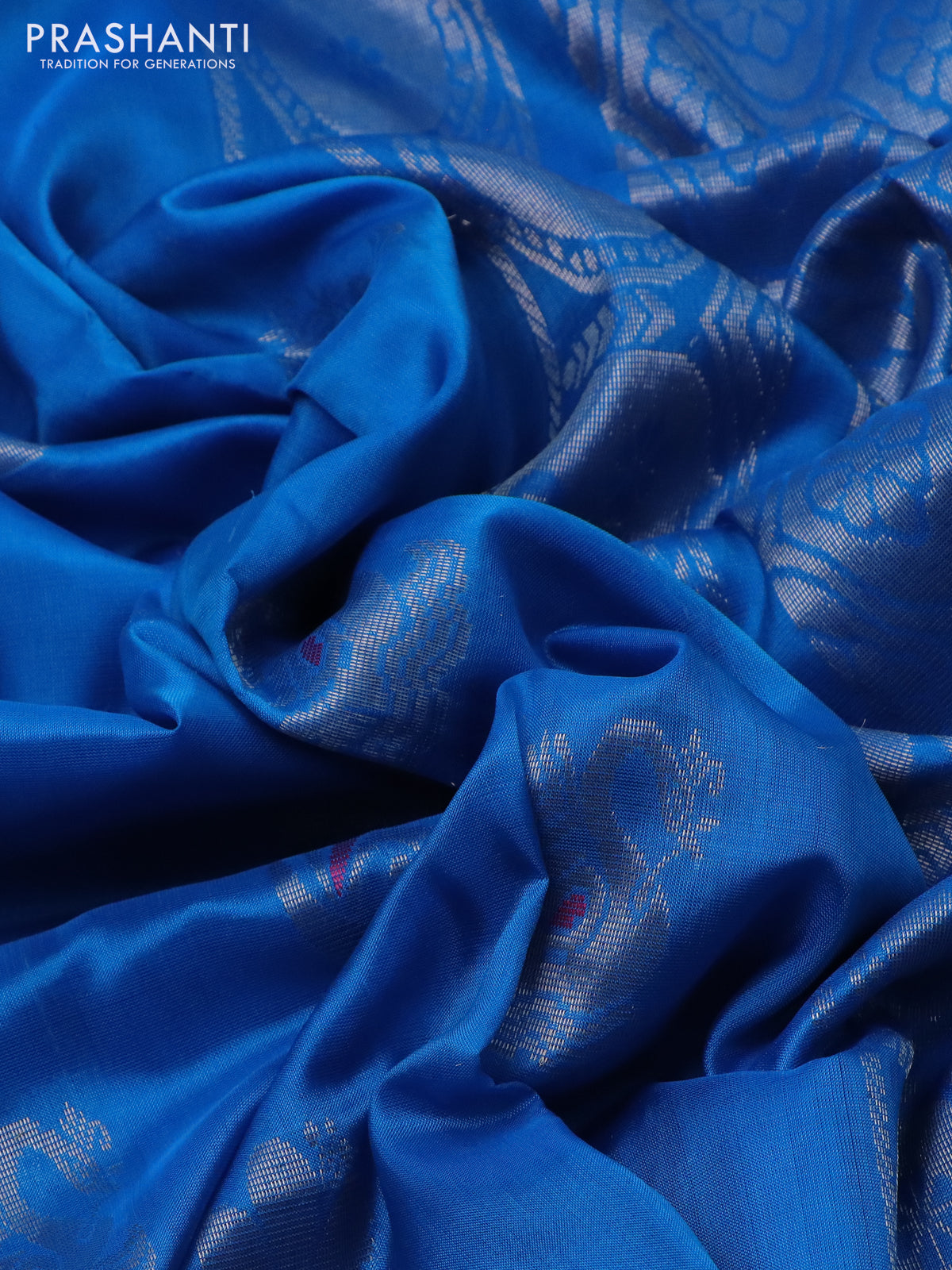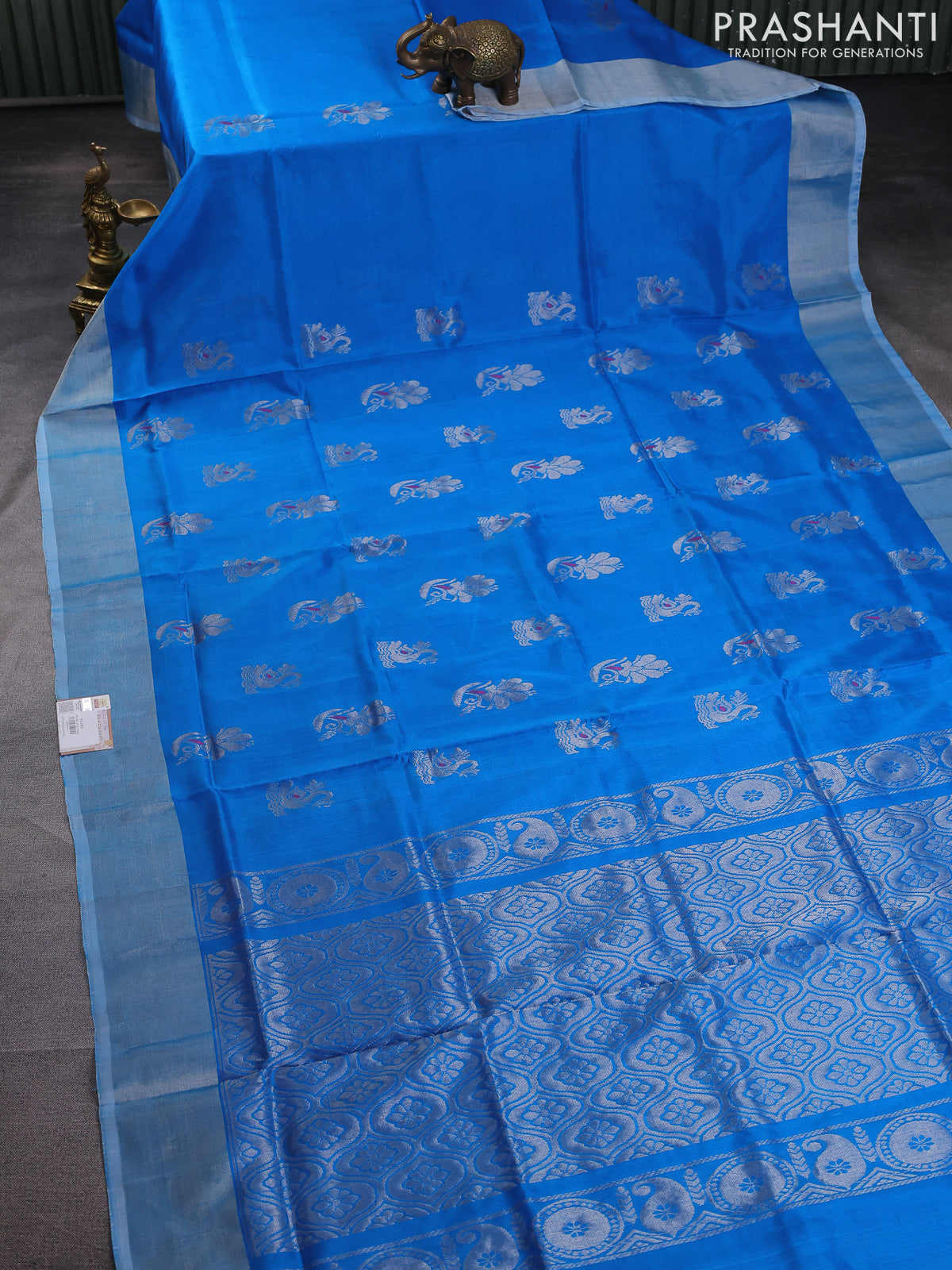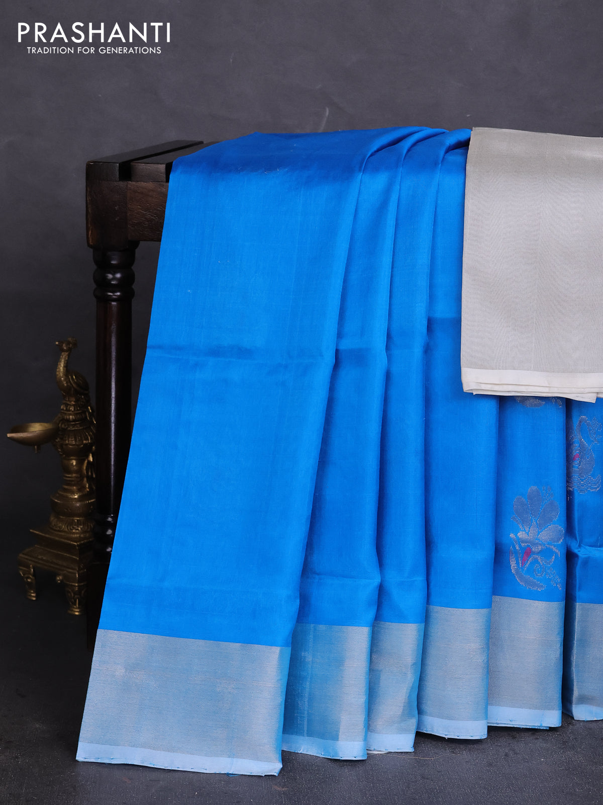 Pure uppada silk saree cs blue with silver zari woven buttas and silver zari woven border
