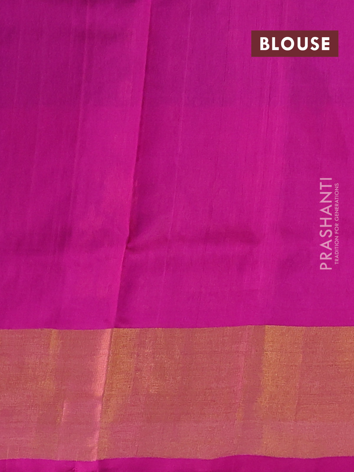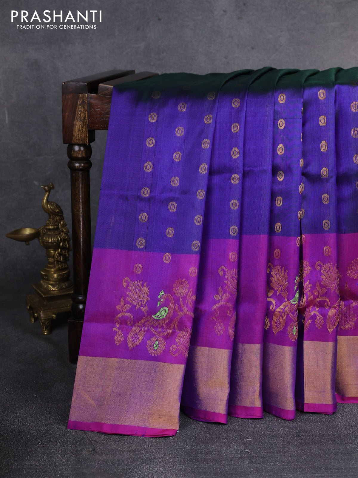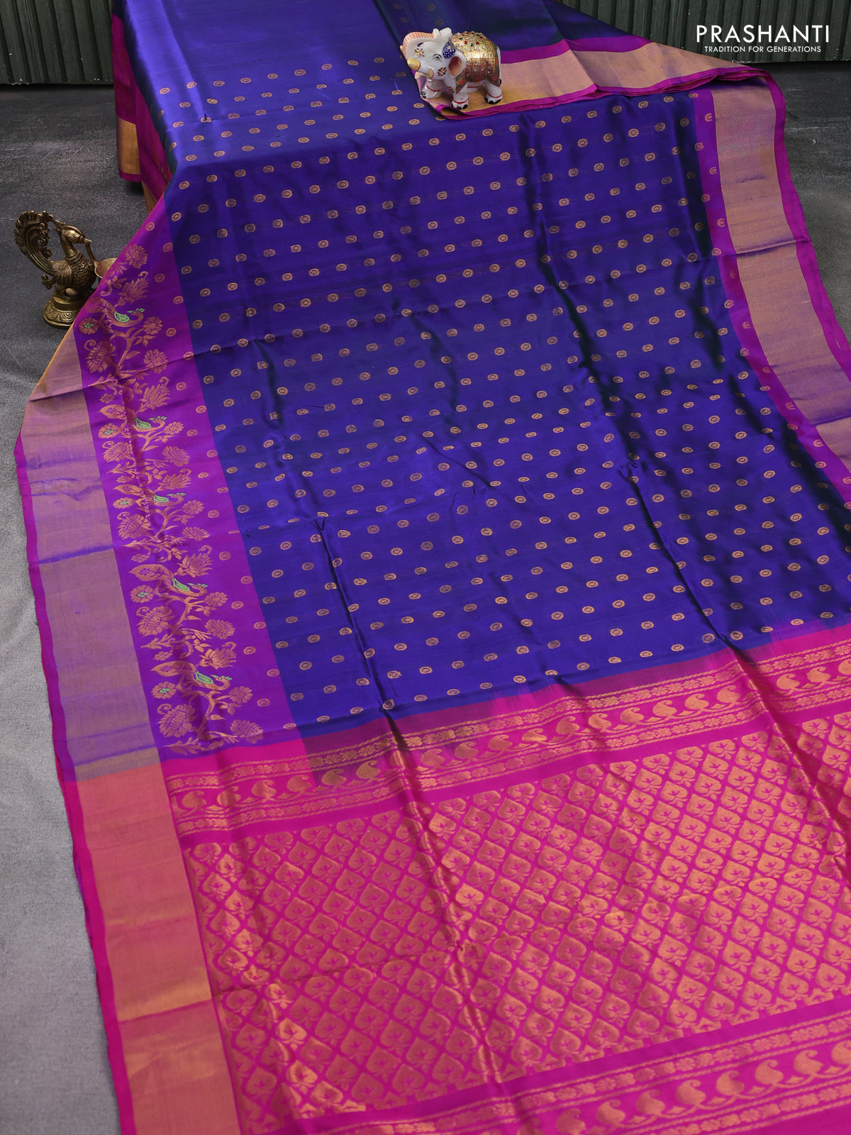 Pure uppada silk saree dual shade of blue and pink with zari woven buttas and long rich zari woven border