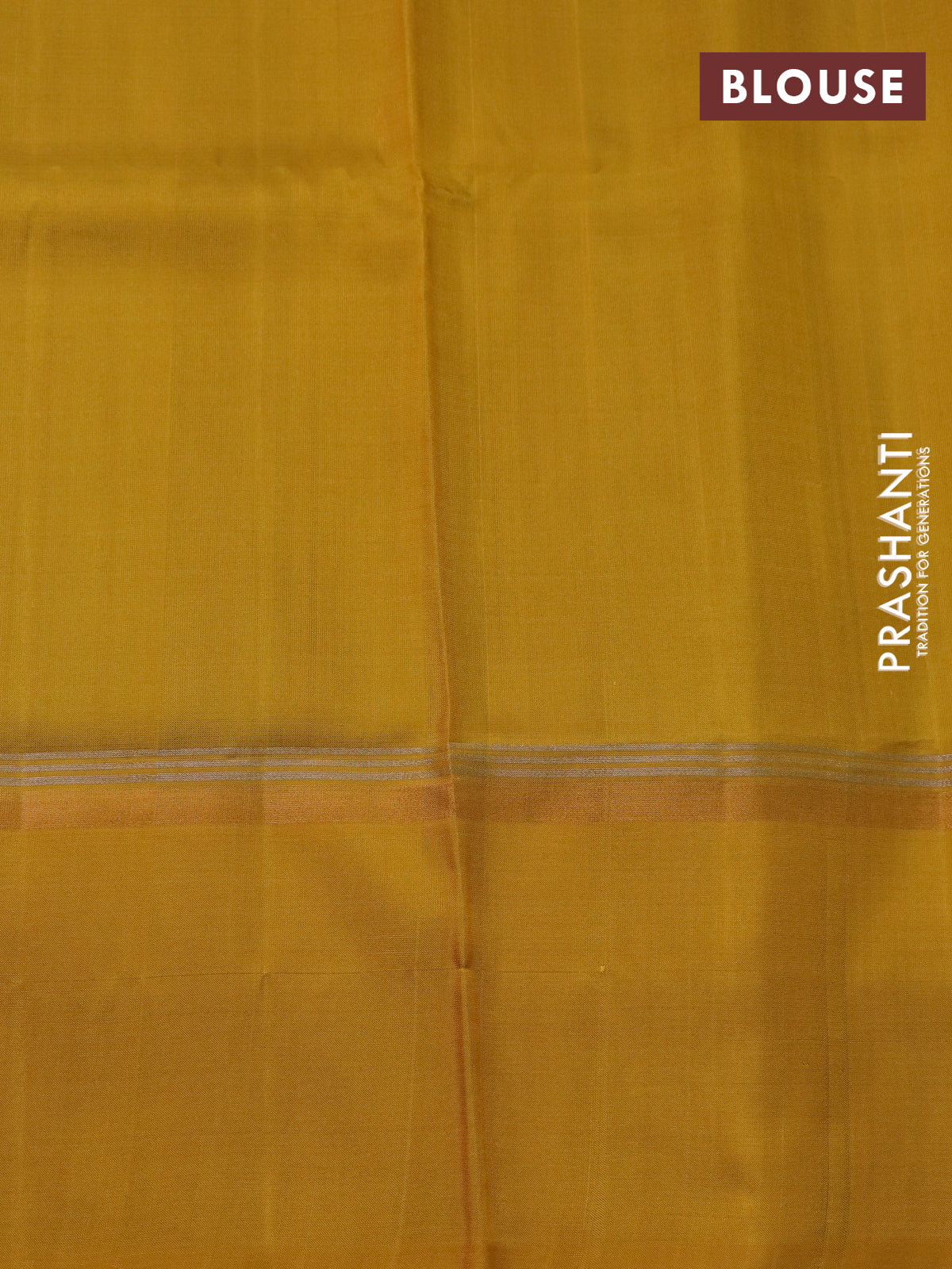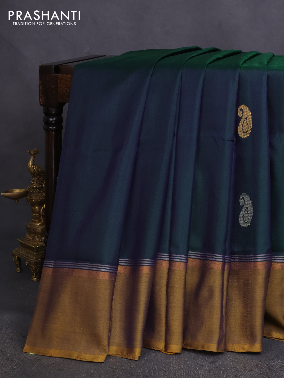 Pure uppada silk saree dual shade of green and mustard yellow with silver & gold zari woven buttas and zari woven simple border