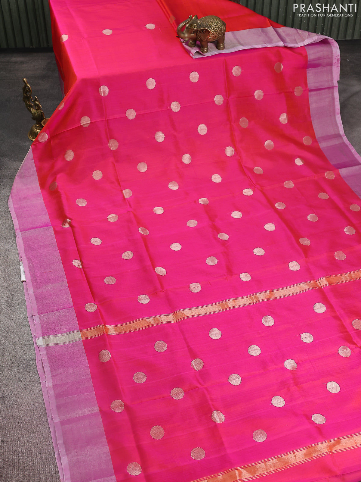 Pure uppada silk saree dual shade of pinkish orange with silver zari woven coin buttas and silver zari woven border