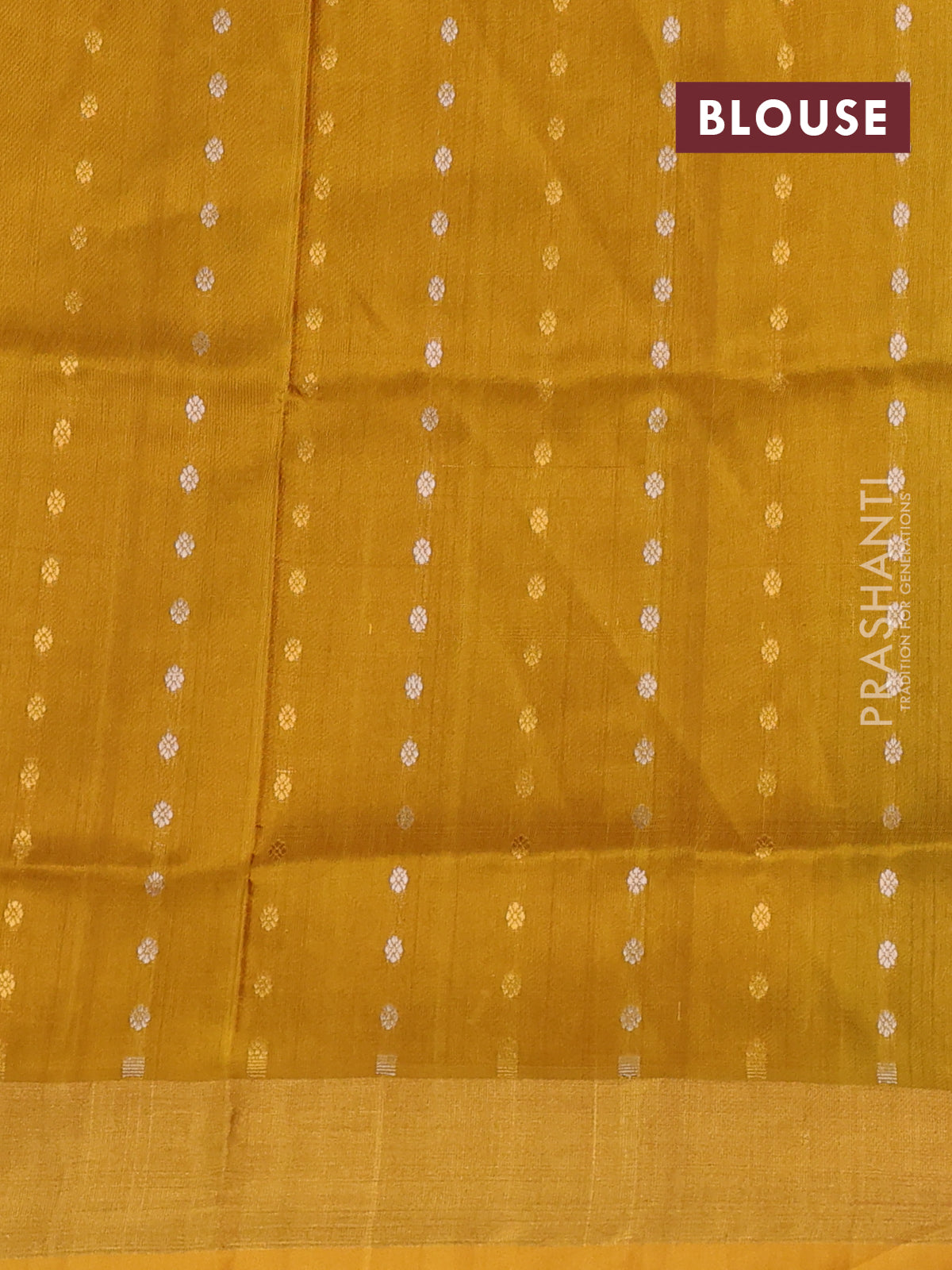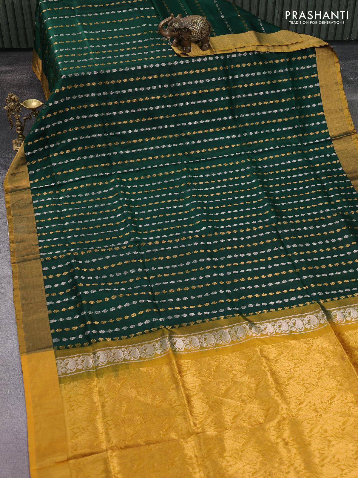 Pure uppada silk saree green and mustard yellow with silver & gold zari woven buttas and zari woven border