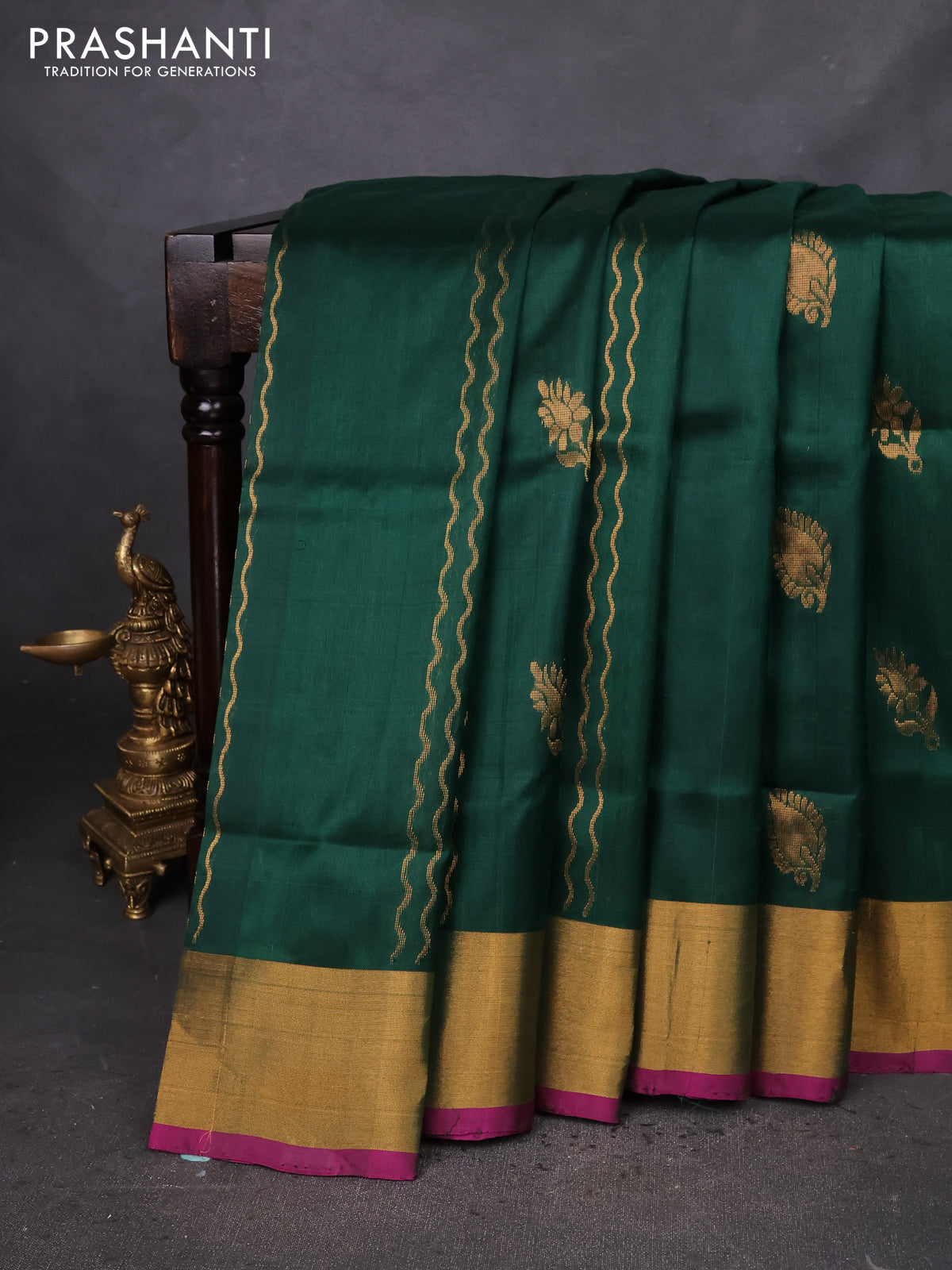 Pure uppada silk saree green and pink with allover zari weaves & buttas and zari woven border