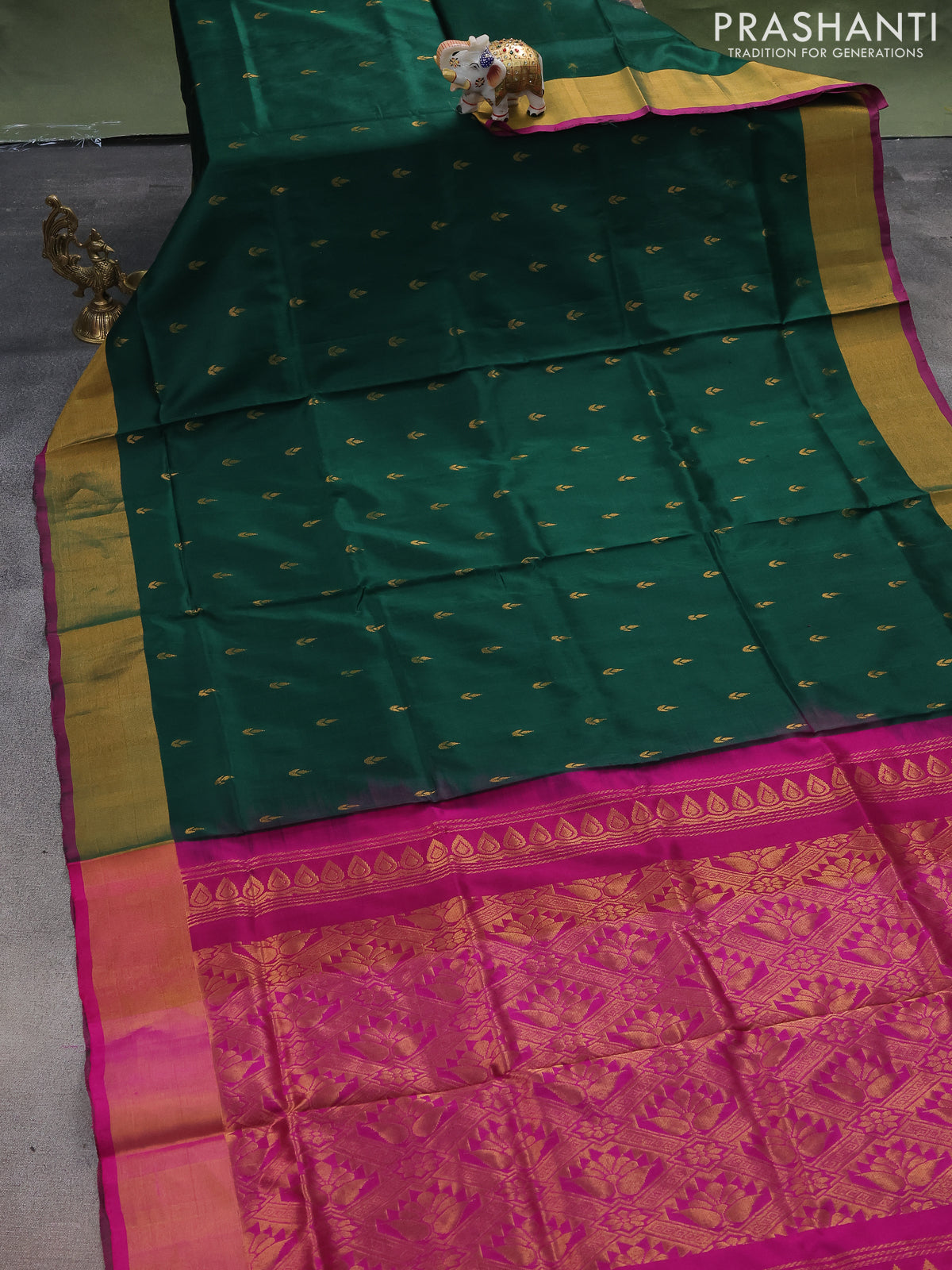 Pure uppada silk saree green and pink with allover zari woven buttas and zari woven border