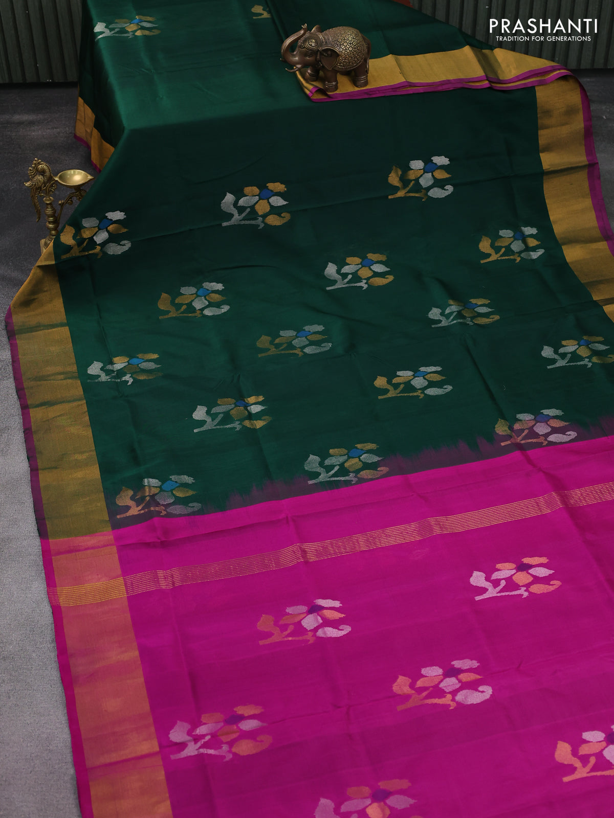 Pure uppada silk saree green and pink with zari woven jamdhani buttas and zari woven border