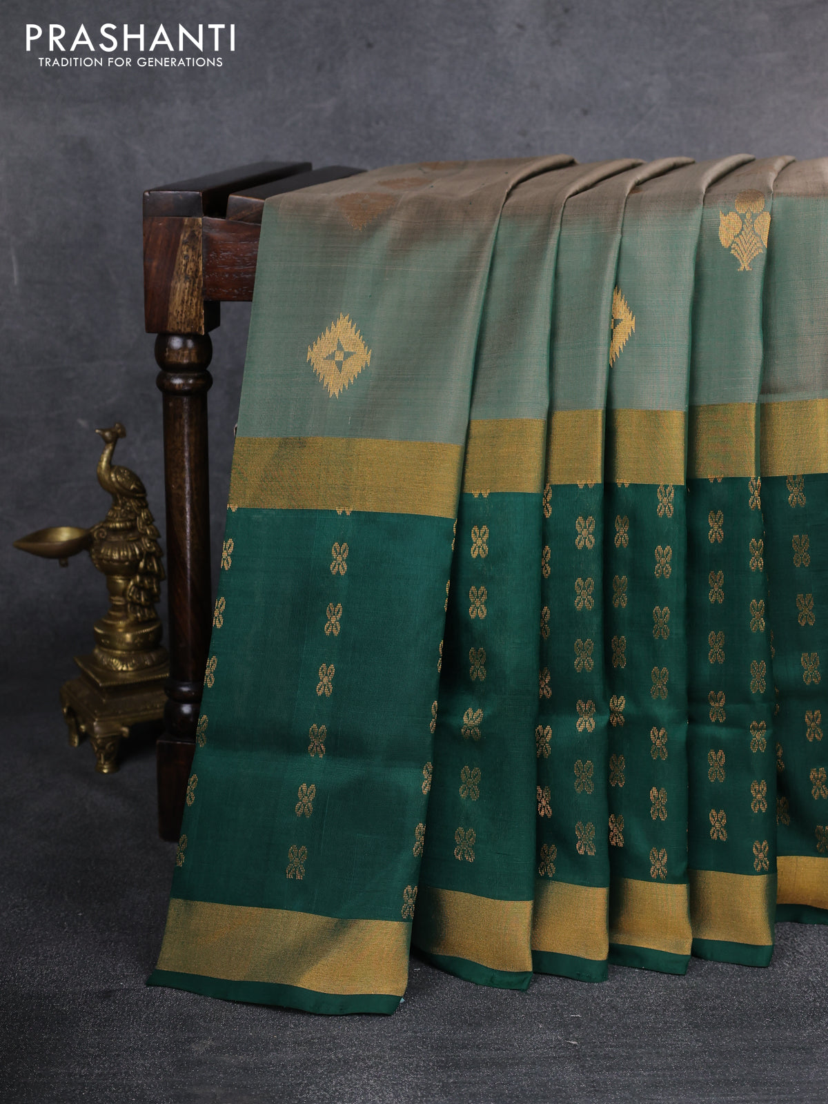 Pure uppada silk saree green shade with zari woven buttas and long zari woven butta border