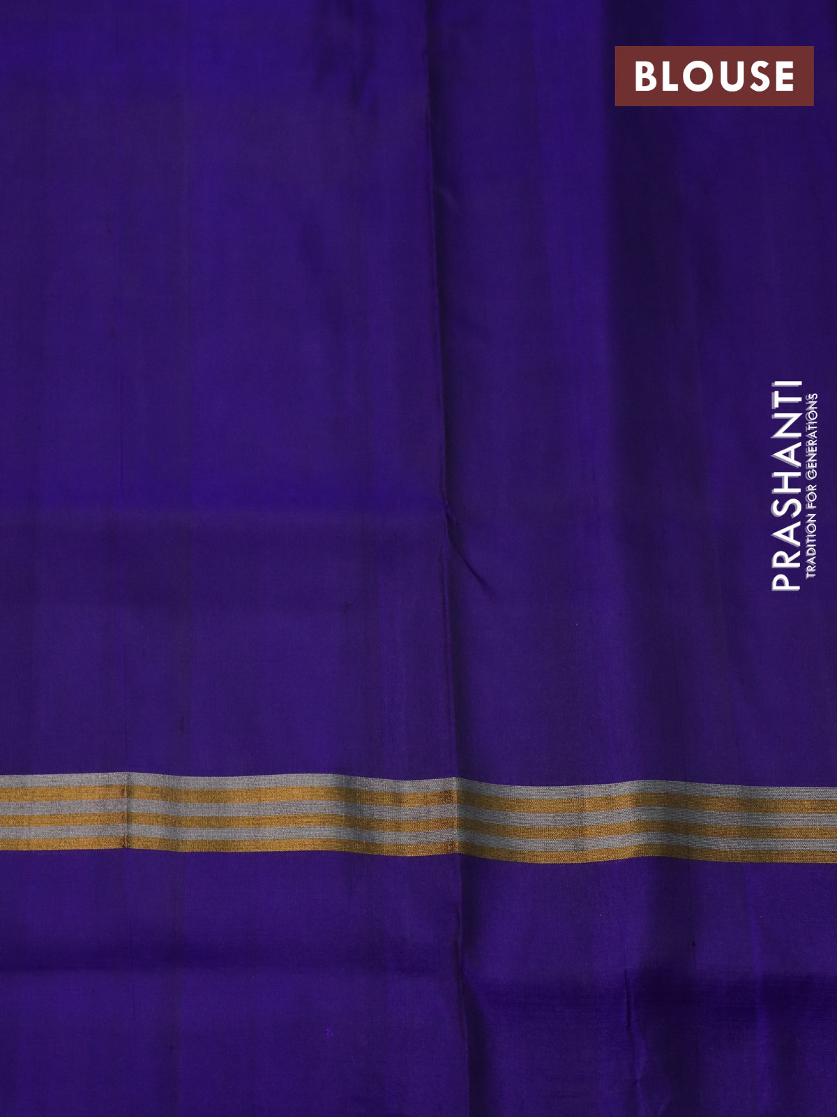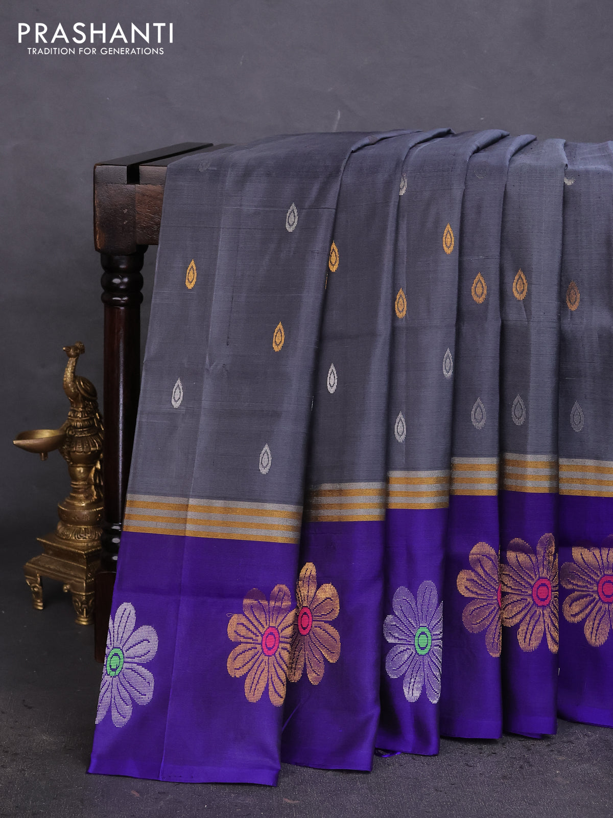 Pure uppada silk saree grey and dark blue with silver & gold zari woven buttas and zari woven floral design butta border
