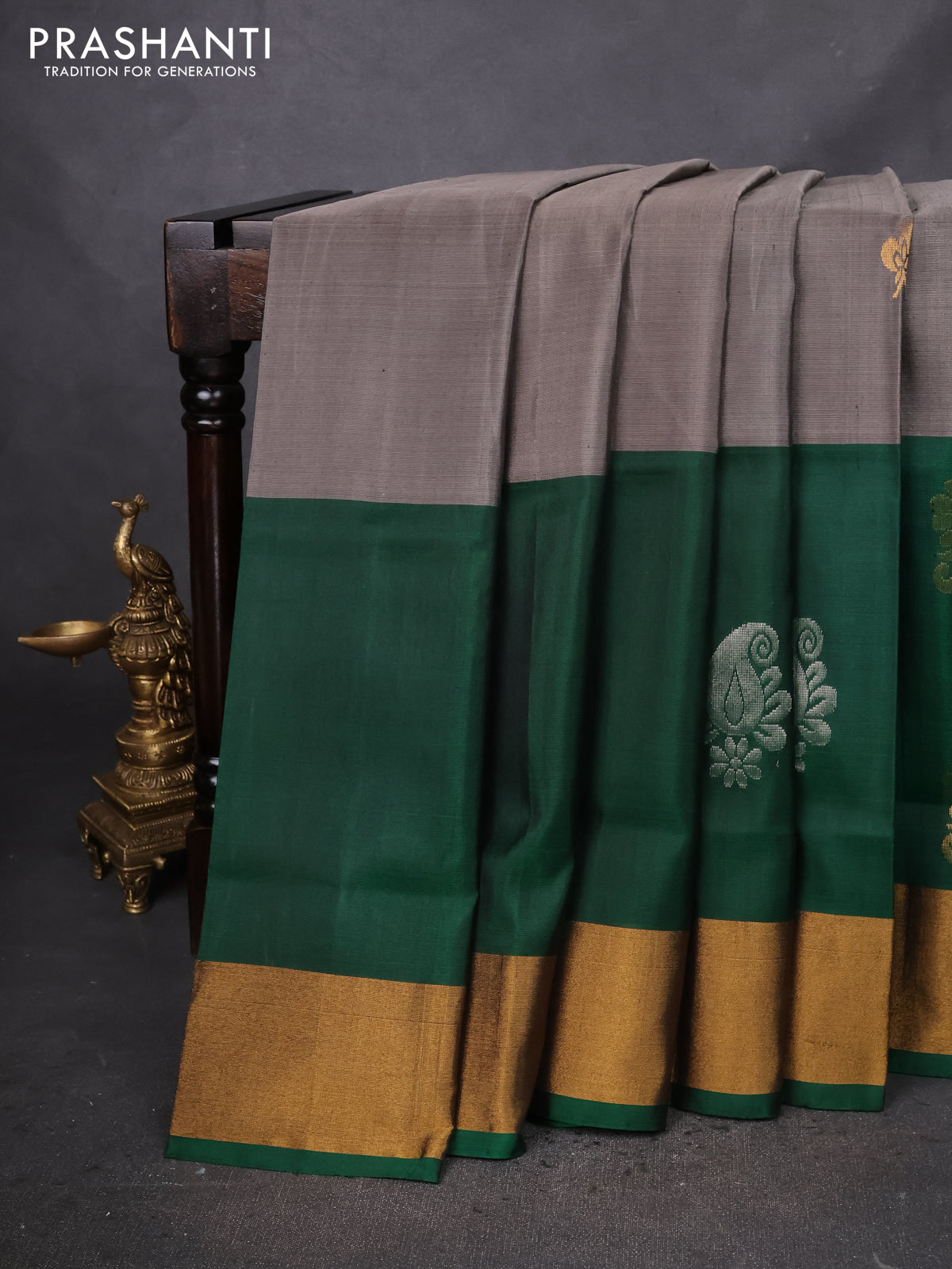 Pure uppada silk saree grey and green with silver & gold zari woven buttas and long zari woven butta border