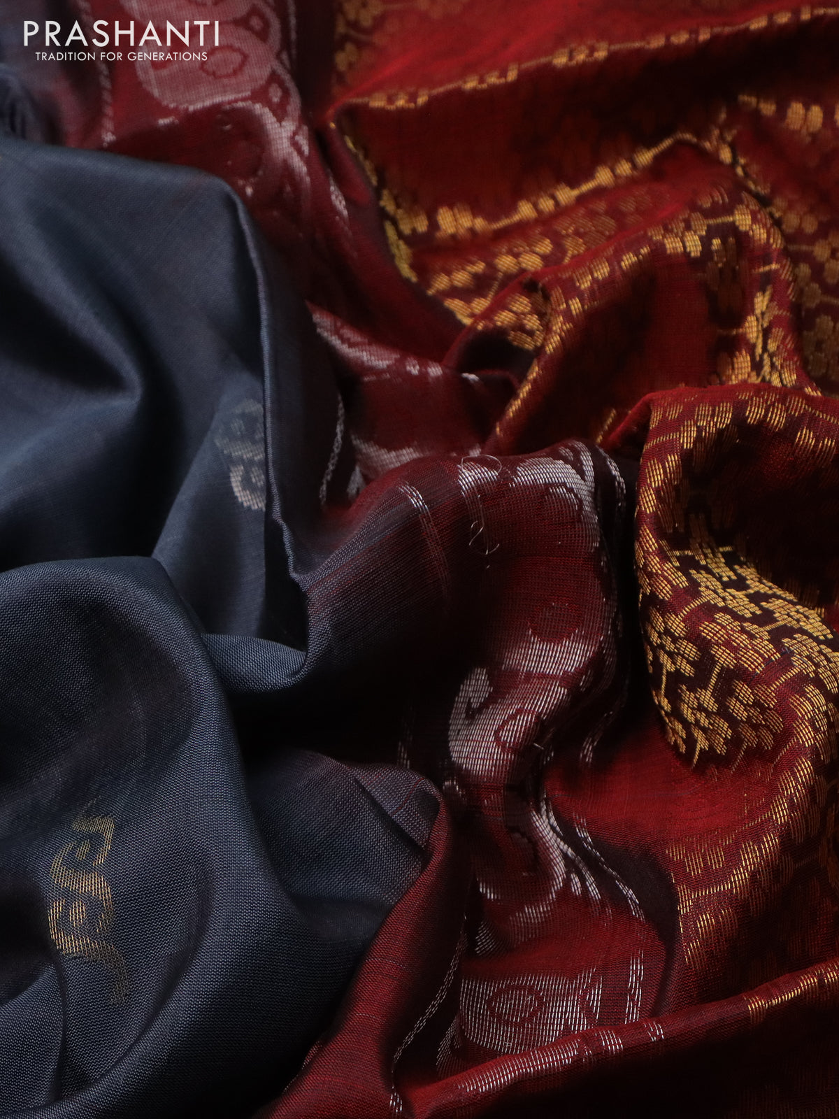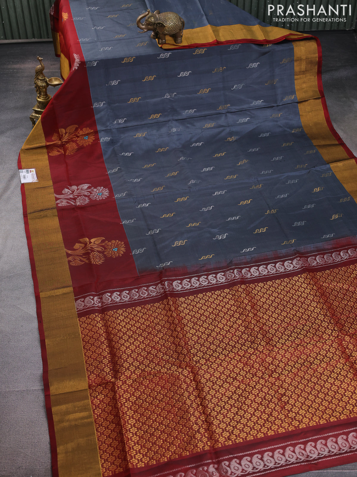 Pure uppada silk saree grey and maroon with silver & gold zari woven buttas and zari woven border