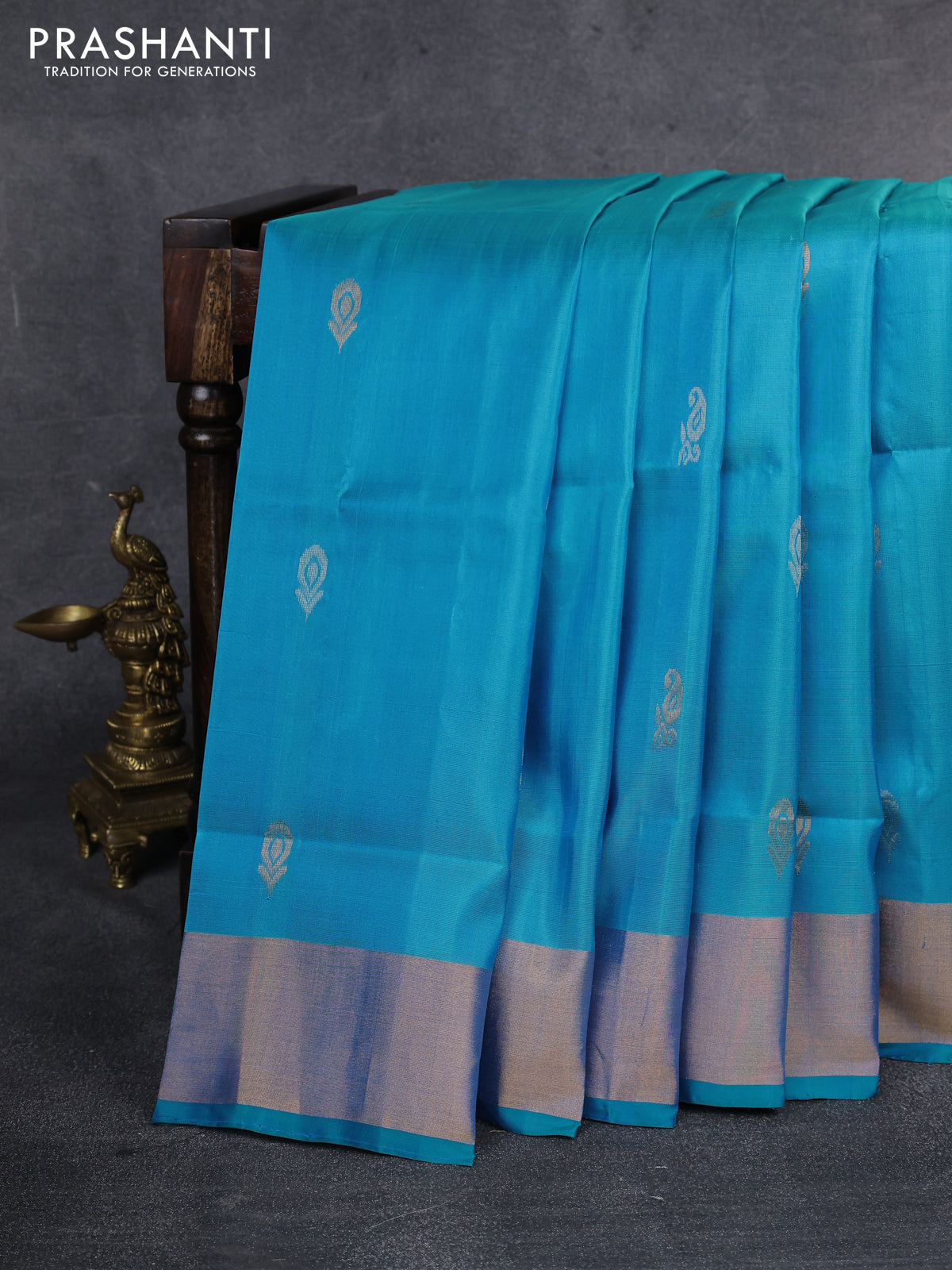 Pure uppada silk saree light blue with silver & gold zari woven buttas and zari woven border