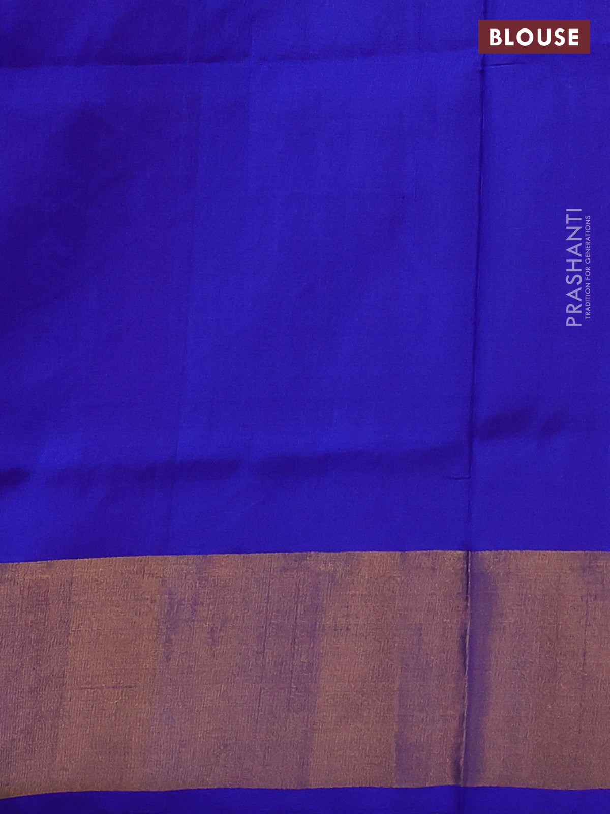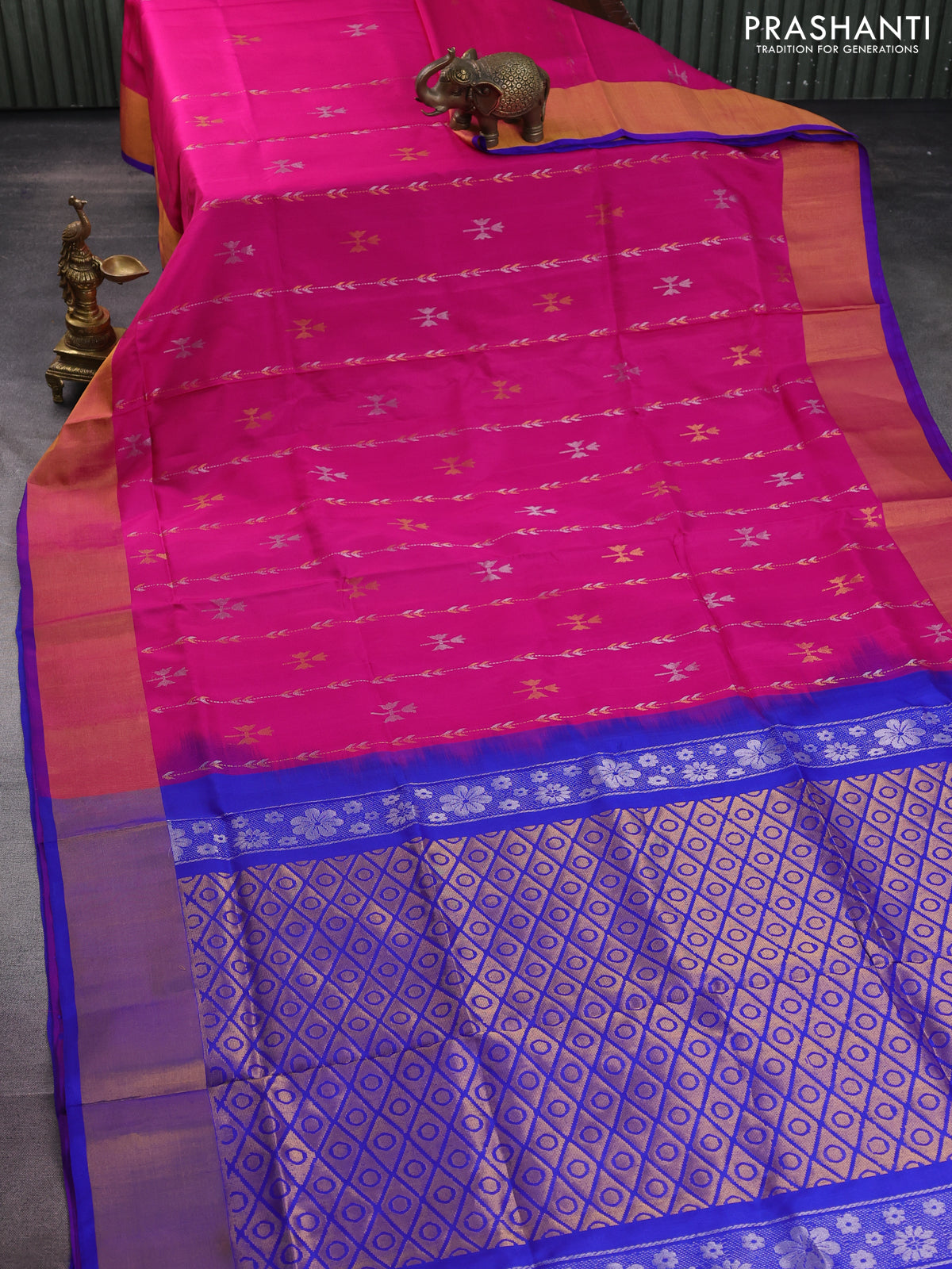 Pure uppada silk saree magenta pink and blue with allover silver & gold zari weaves and zari woven border