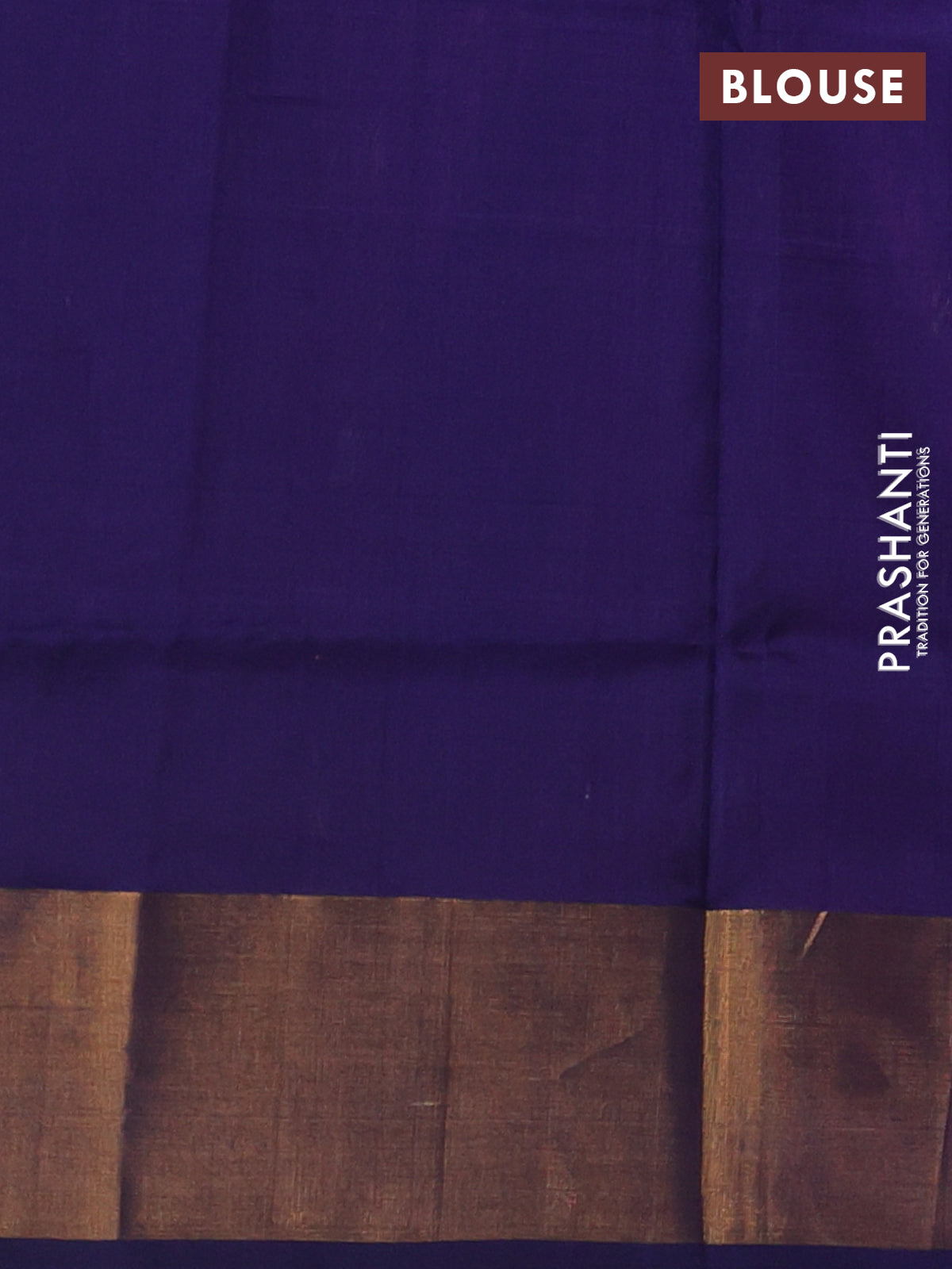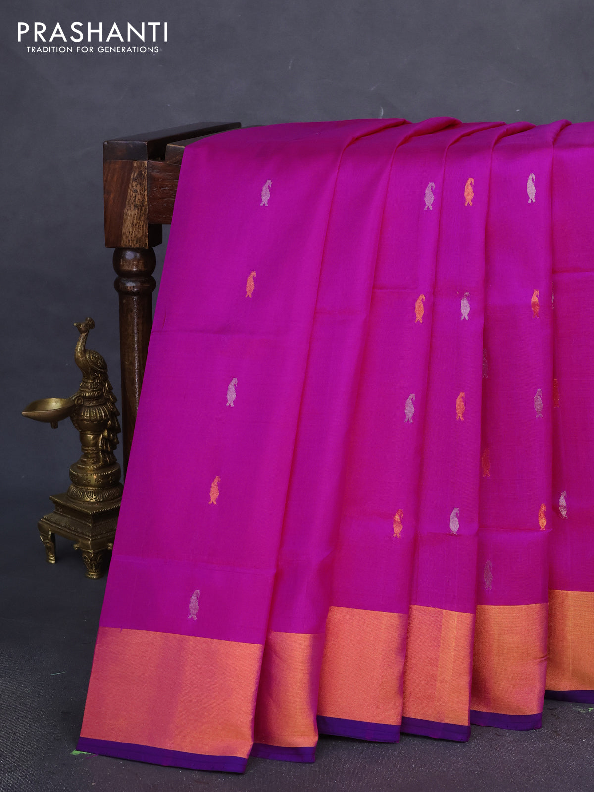 Pure uppada silk saree magenta pink and dark blue with silver & gold zari woven paisley buttas and jamdhani design pallu & zari woven border