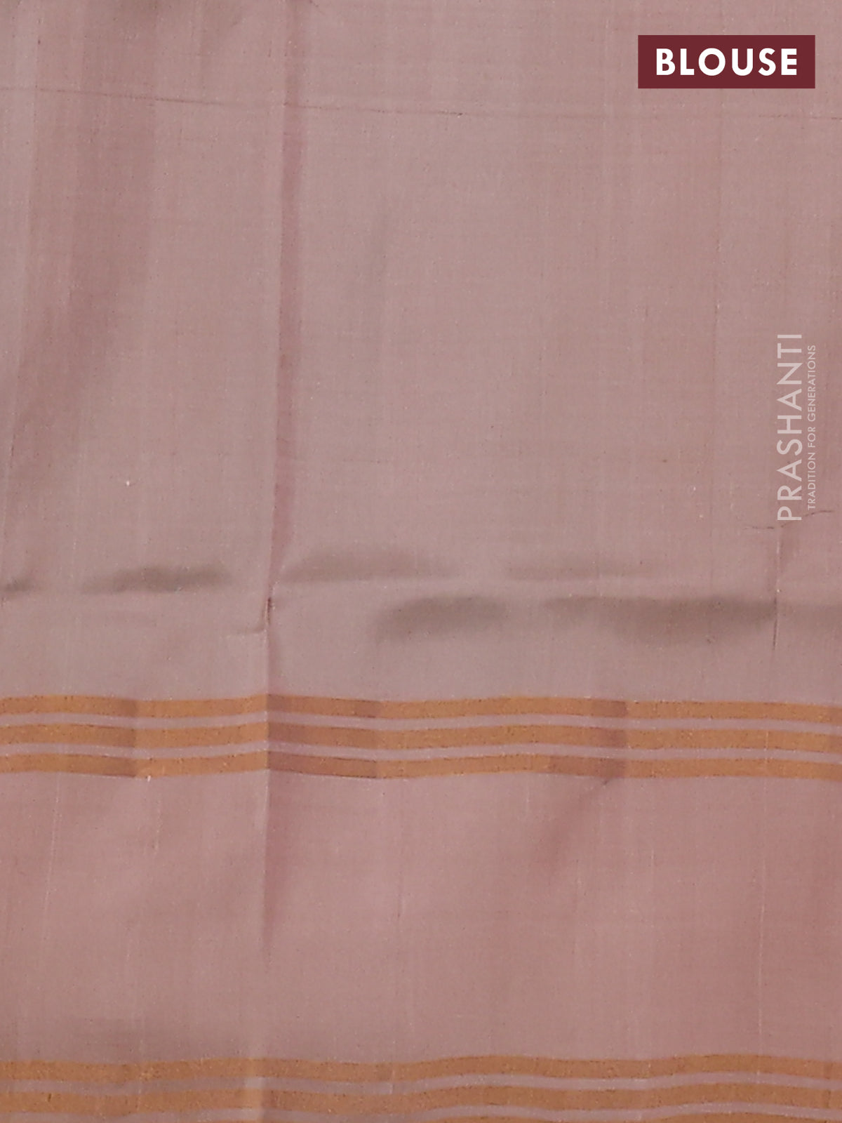 Pure uppada silk saree pastel blue shade and sandal with silver & gold zari woven buttas and rettapet zari woven border