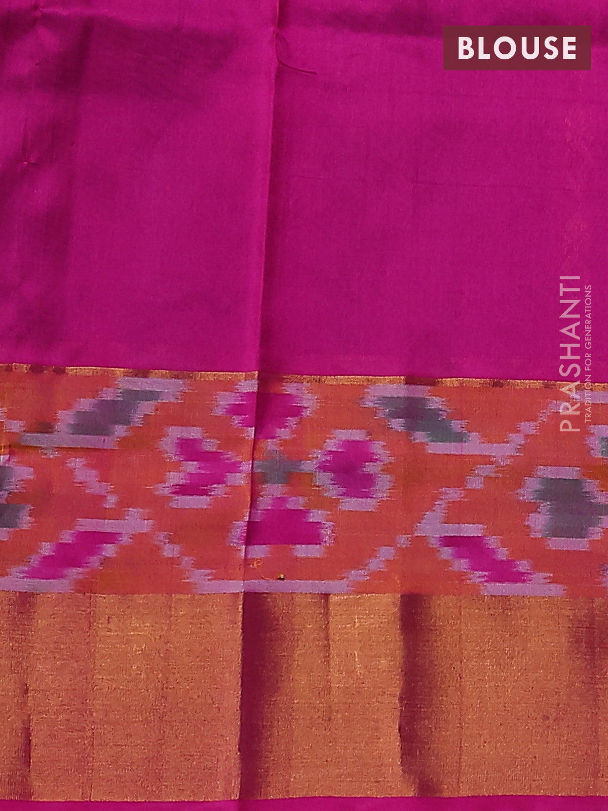Pure uppada silk saree peacock blue and pink with allover zari weaves and zari woven ikat style border