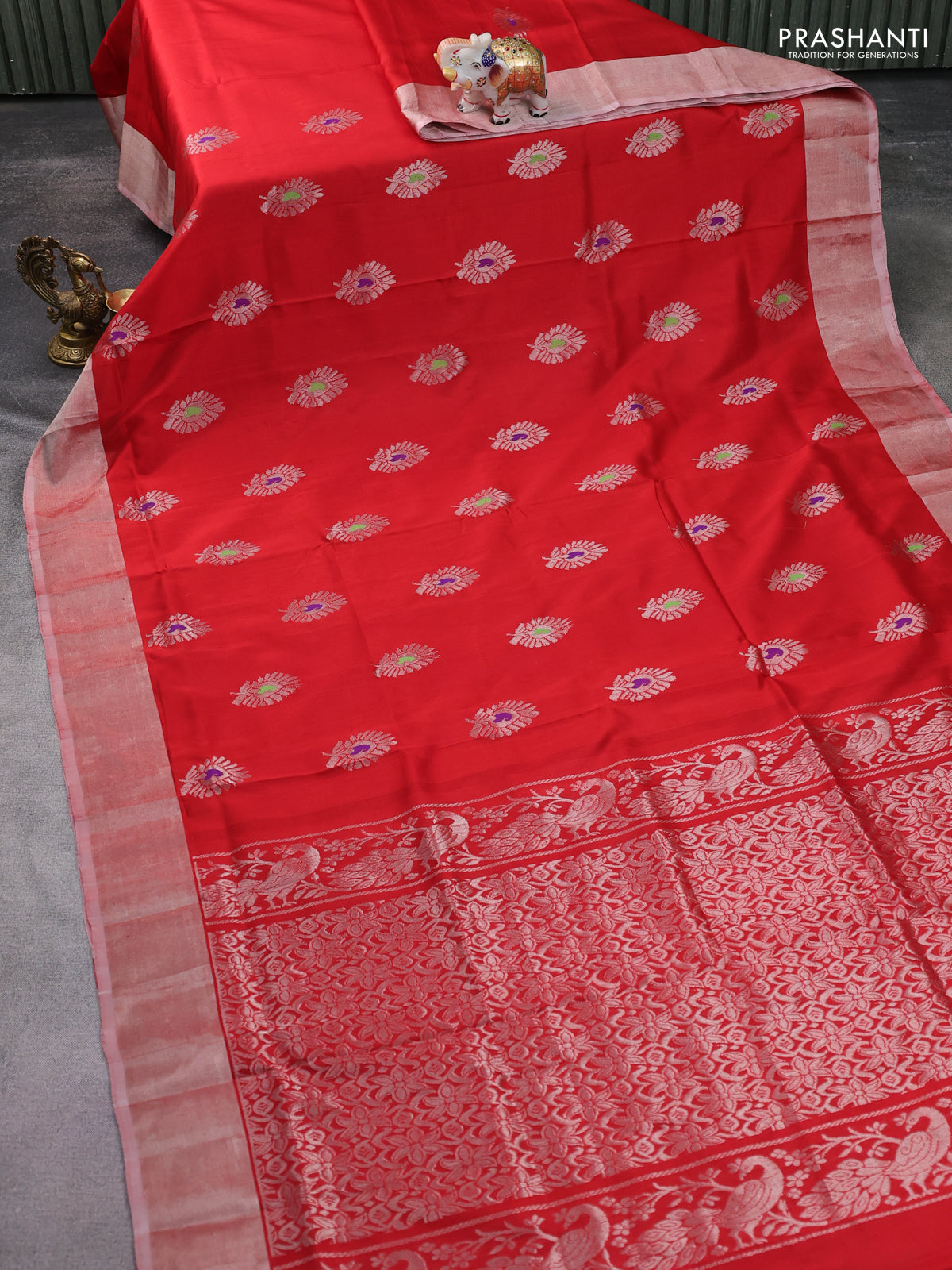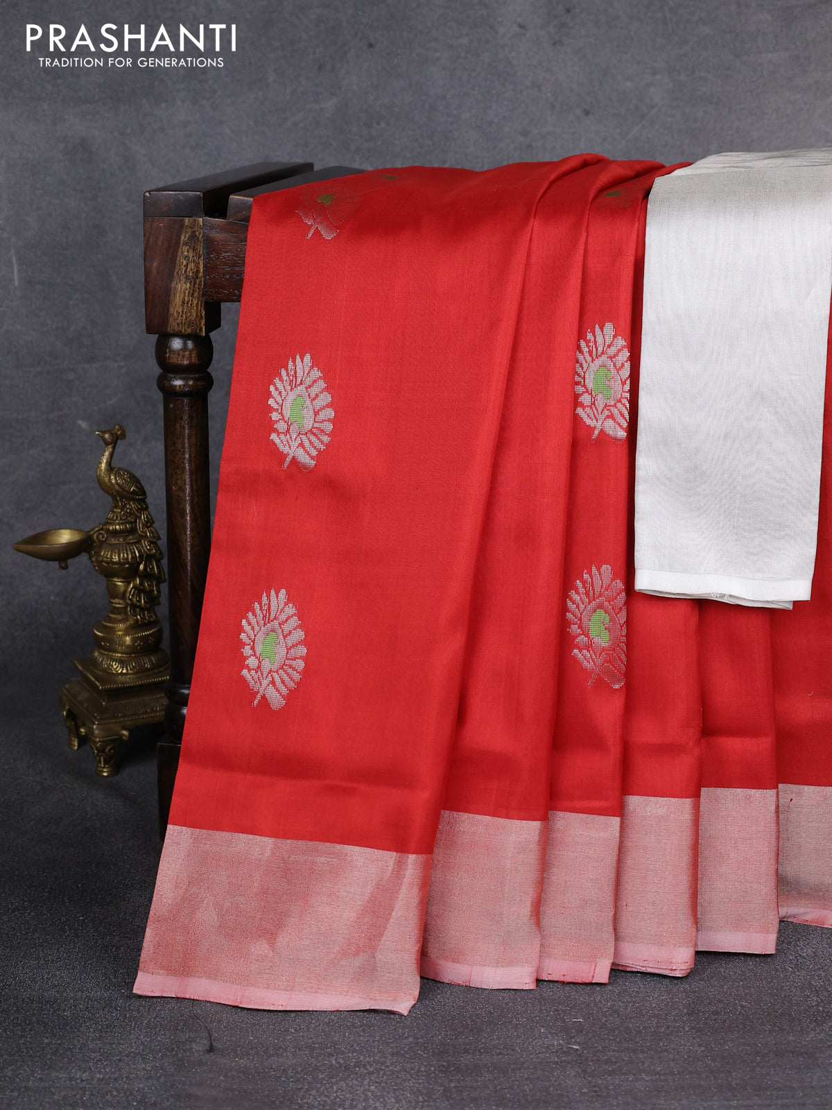 Pure uppada silk saree red with silver zari woven buttas and silver zari woven border