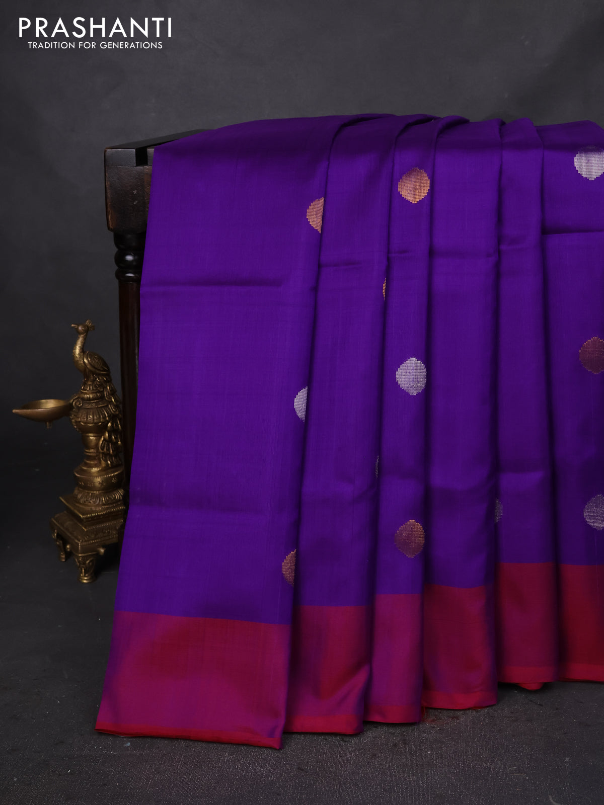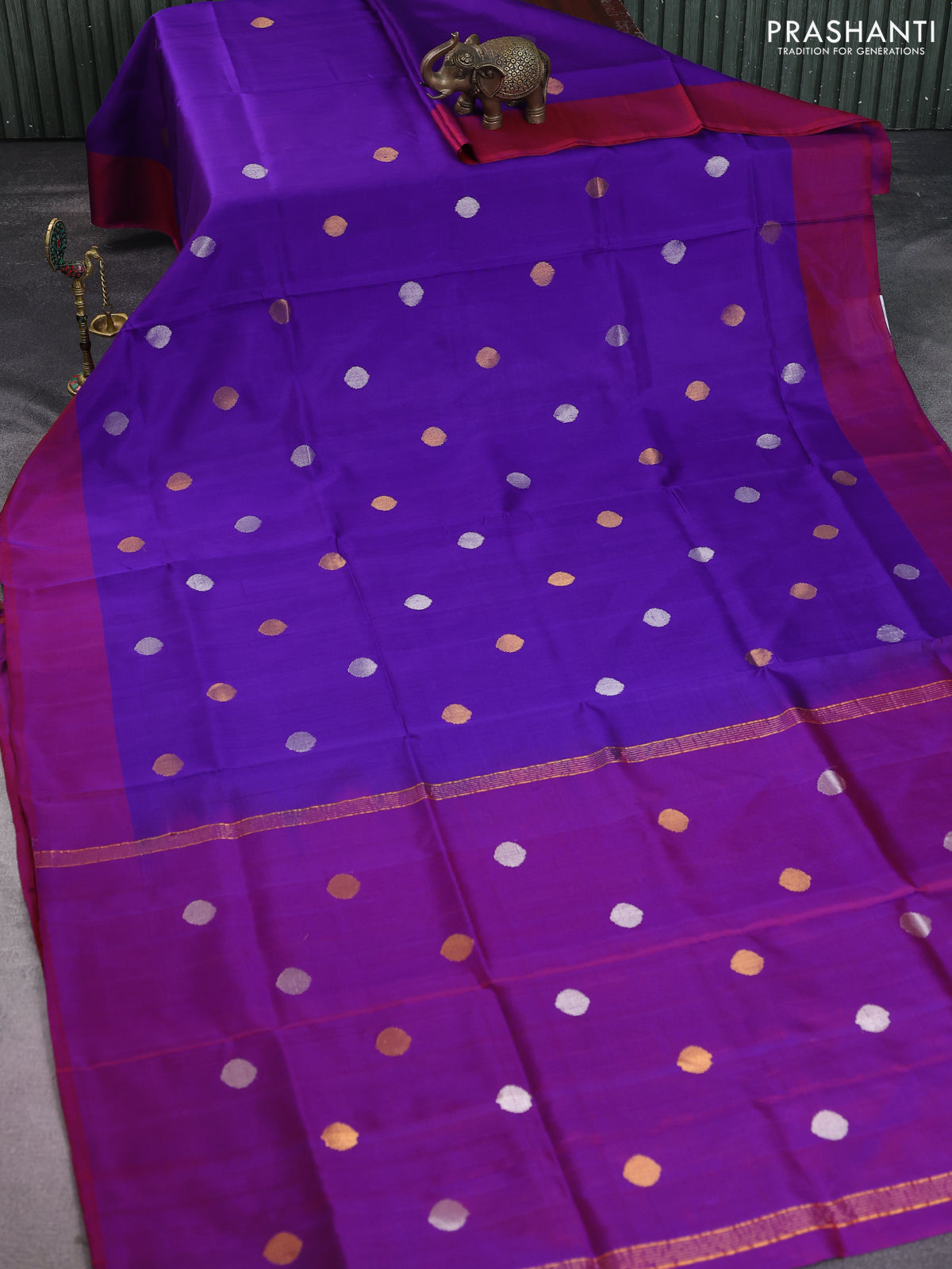 Pure uppada silk saree violet and maroon with silver & gold zari woven coin buttas and simple border