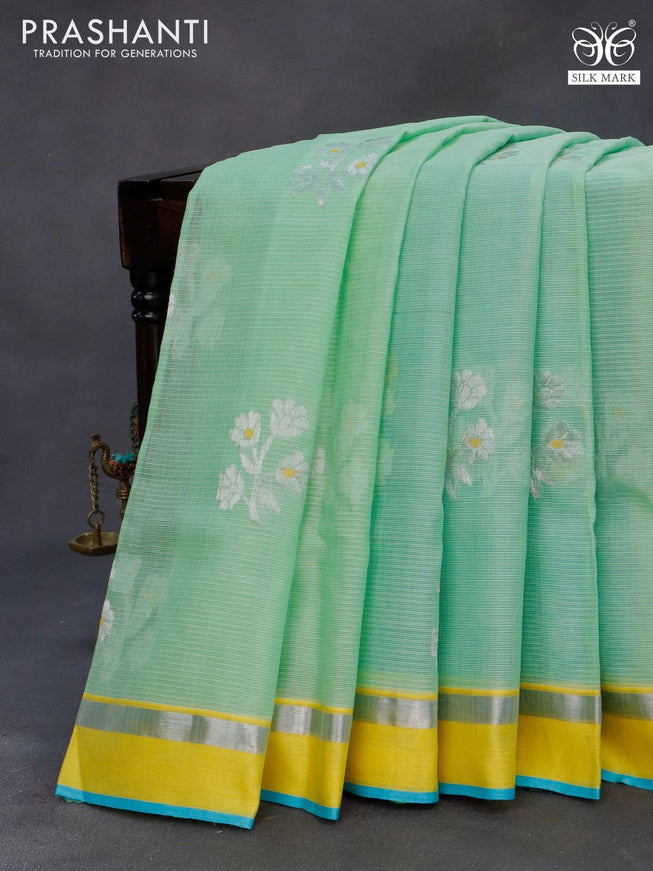 Pure zari kota silk saree light blue and red with thread & zari woven buttas and silver zari woven border