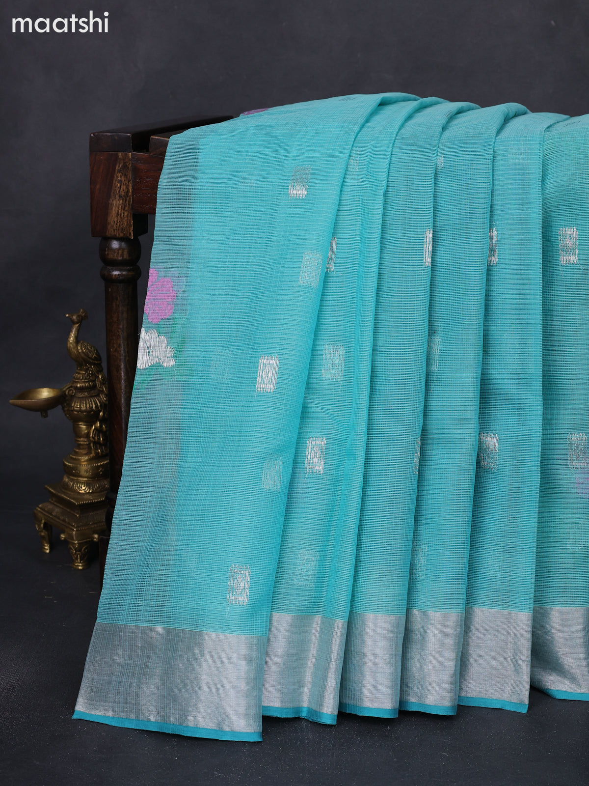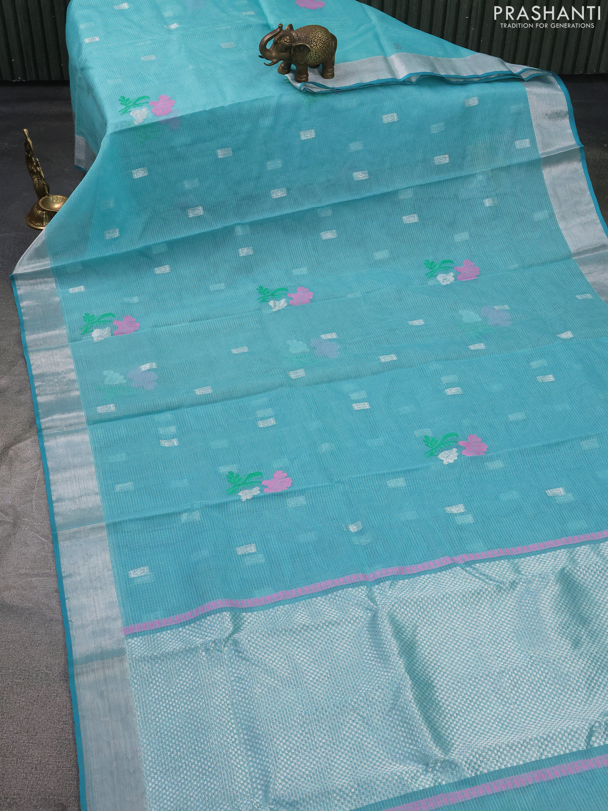 Pure zari kota silk saree light blue with silver zari woven buttas and silver zari woven border