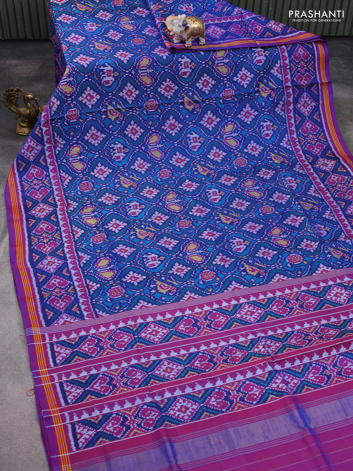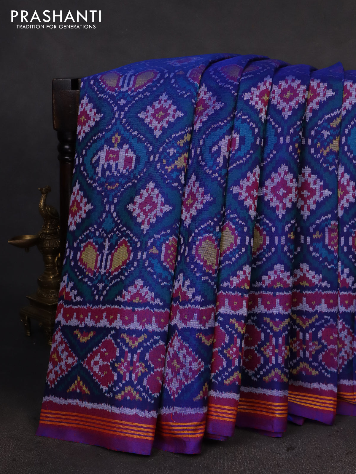 Rajkot patola silk saree blue and maroon with allover patola weaves and ikat woven border