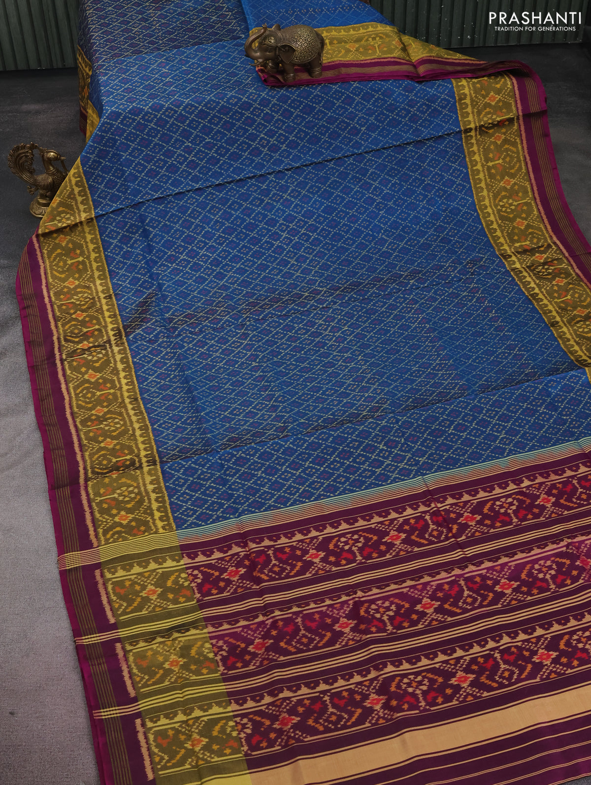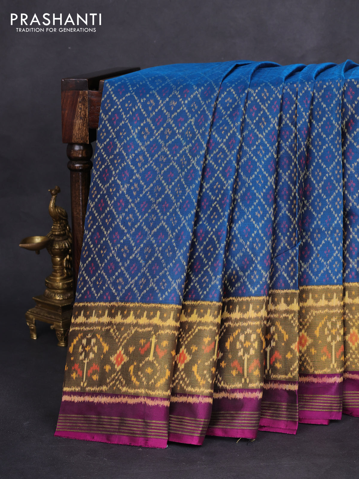 Rajkot patola silk saree cs blue and deep purple with allover ikat weaves and long zari woven border