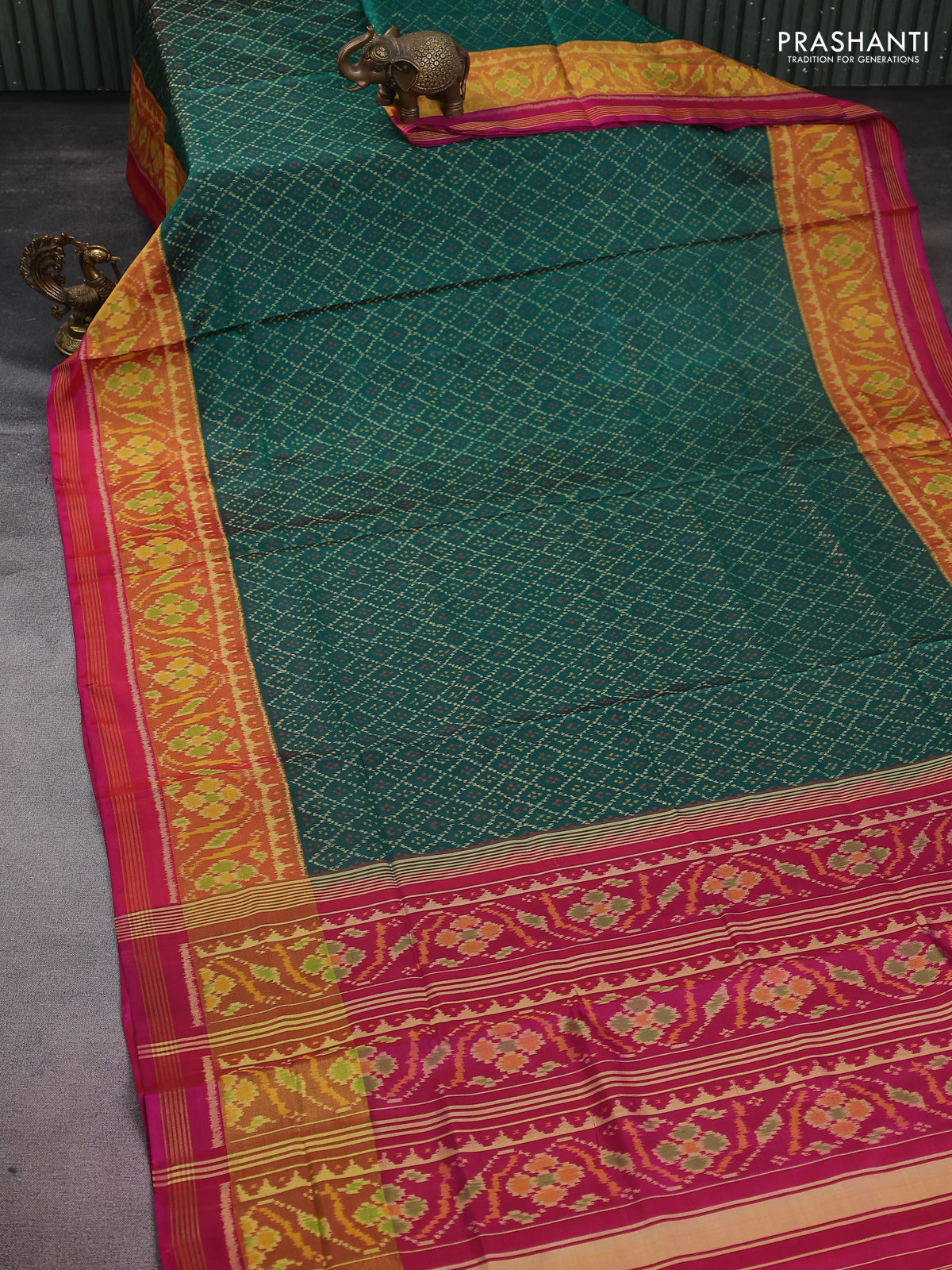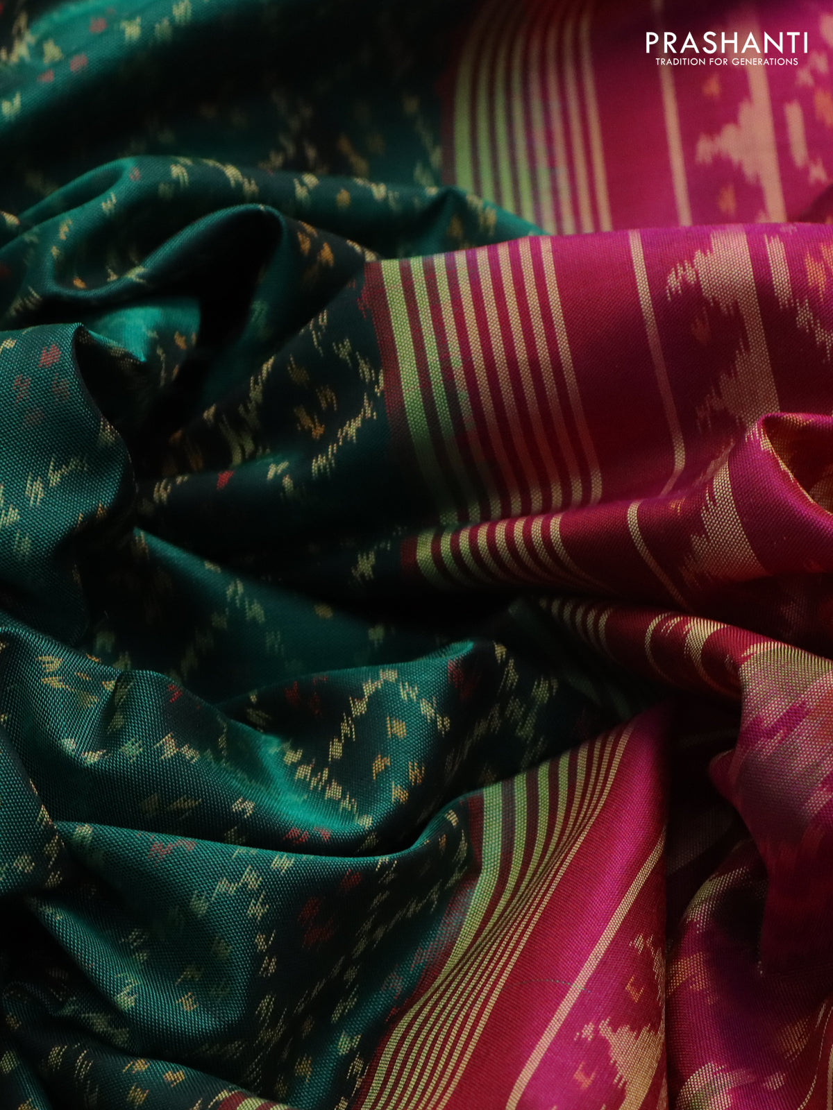 Rajkot patola silk saree green and pink with allover ikat weaves and long zari woven border